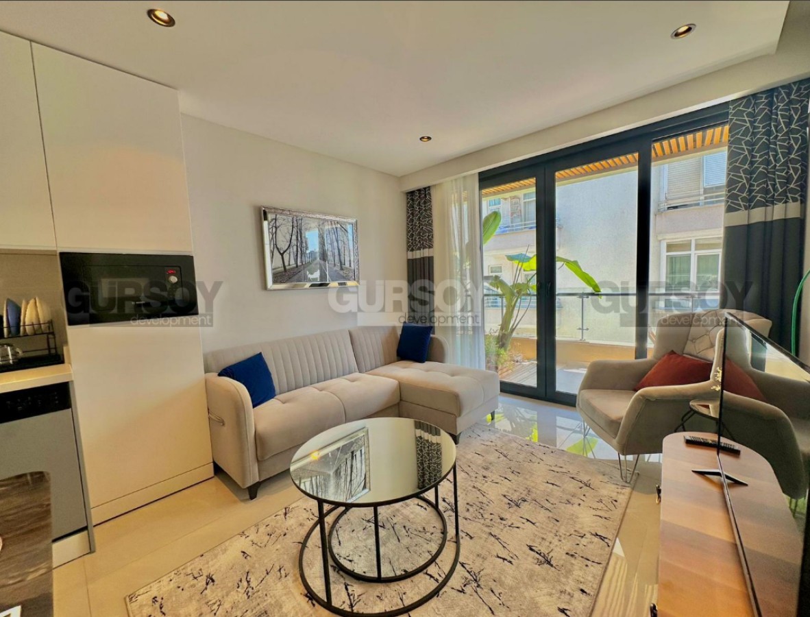 Прекрасная квартира в 200 метрах от пляжа Клеопатра — это идеальный выбор для тех, кто мечтает жить в самом центре Алании, наслаждаясь близостью к морю и всем, что предлагает этот популярный район. Квартира с планировкой 1+1 (одна спальня и гостиная) площадью 50 м², выполнена в современном стиле и уже полностью меблирована. В квартире установлены современные бытовые приборы, включая кондиционер, стиральную машину и холодильник, что позволяет сразу заселиться и наслаждаться комфортом.