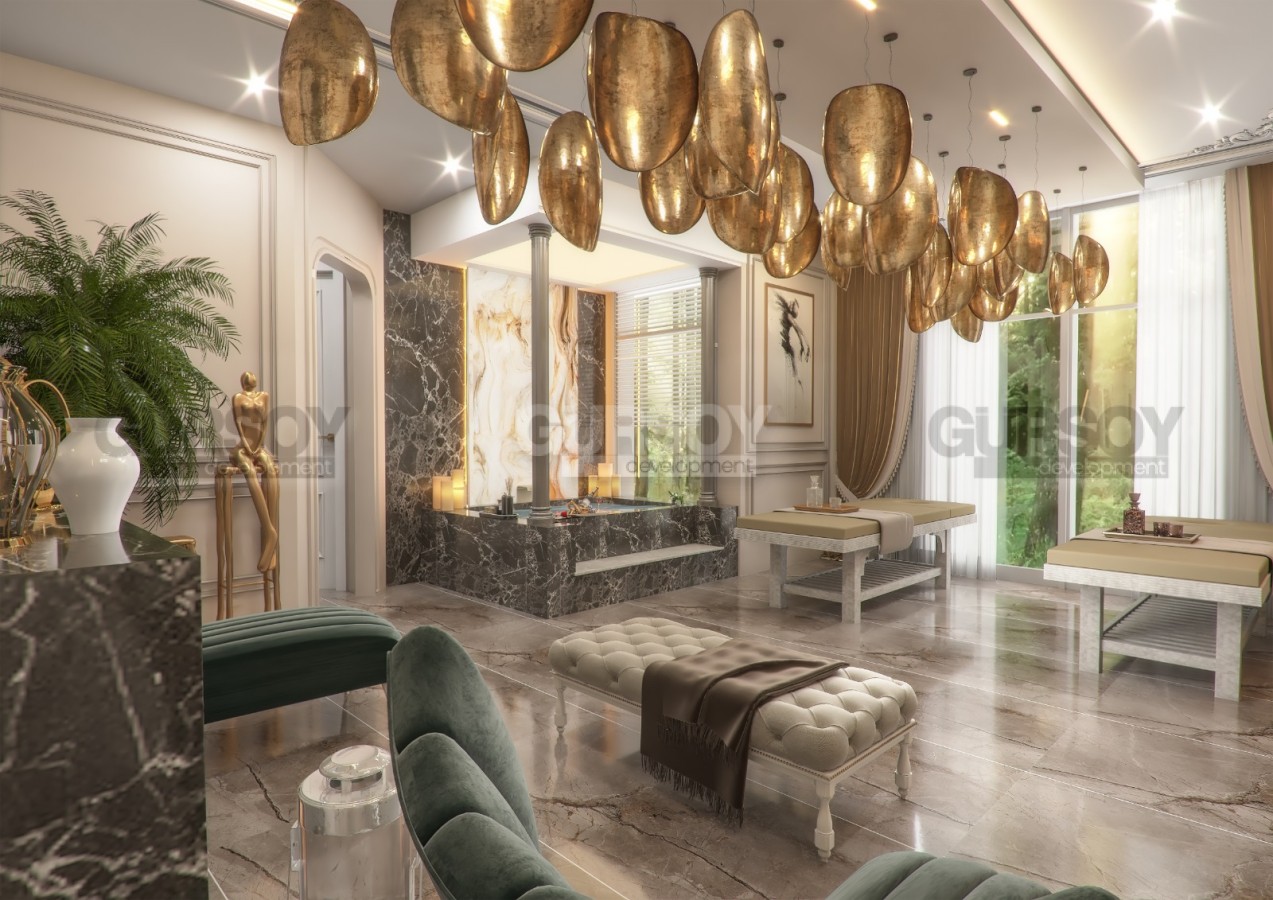 Жилой комплекс в Махмутларе имеет большую ухоженную территорию. Здесь есть все необходимое для комфортного проживания - большой плавательный бассейн с зоной отдыха, мини аква-парк, закрытый бассейн с водными горками, сауна, паровая комната, хамам, массажный кабинет, солевая комната, тренажерный зал, мультикорт для игры в теннис и падел, ресторан на территории, бильярд и настольный теннис, ТВ- и конференц-зал, детская игровая зона, закрытая автомобильная парковка на 110 мест, генератор, видеонаблюдение, охрана, лобби, ресепшн. Приятной деталью станет и наличие собственного перехода к пляжу.