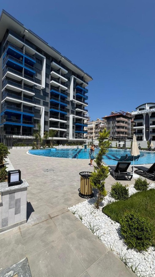 Предлагается к продаже квартира планировки 1+1 в современном жилом комплексе , расположенном в центральной части Аланьи. Квартира площадью 50 м² находится в блоке A, и включает в себя просторную гостиную с кухней открытого типа, одну спальню, ванную комнату и балкон с видом на территорию комплекса и городской пейзаж. Квартира продаётся без мебели, что даёт возможность обустроить интерьер по своему вкусу. Здание было построено в 2024 году и находится в отличном состоянии.