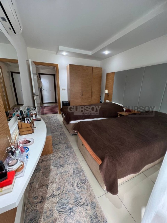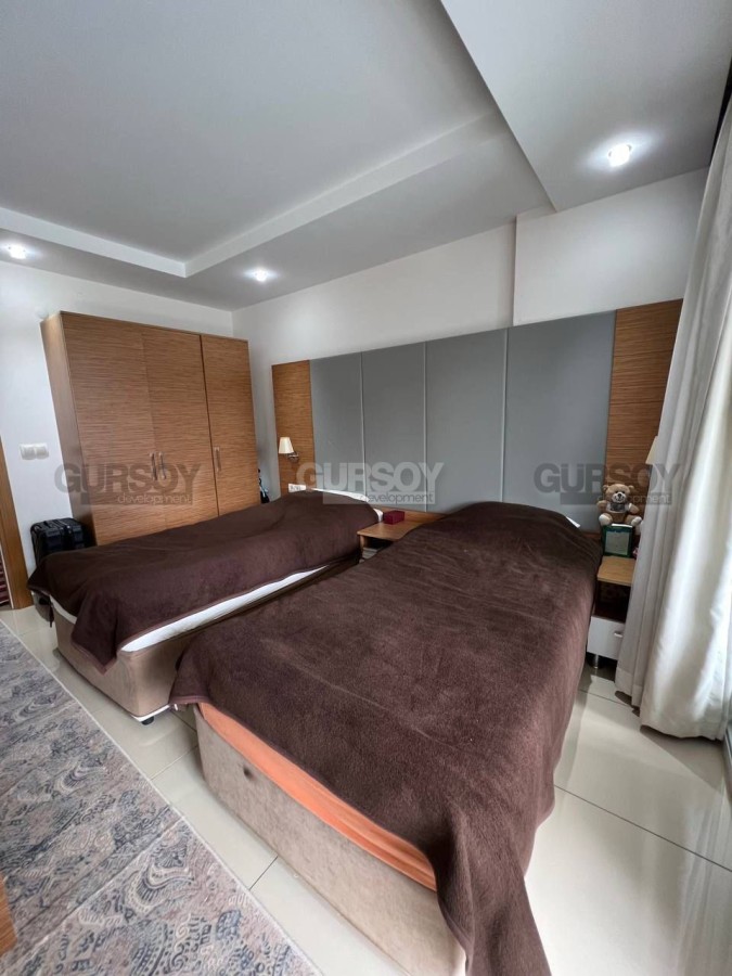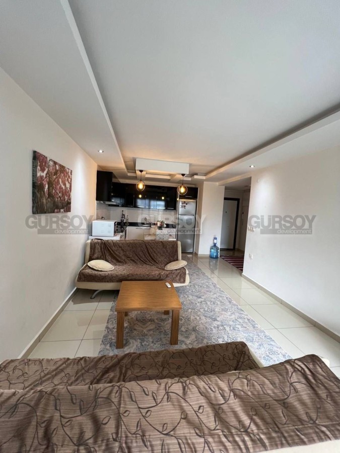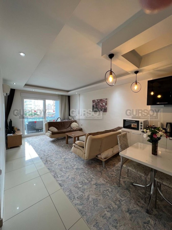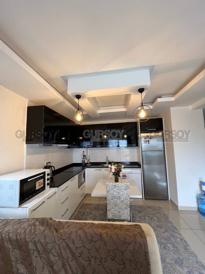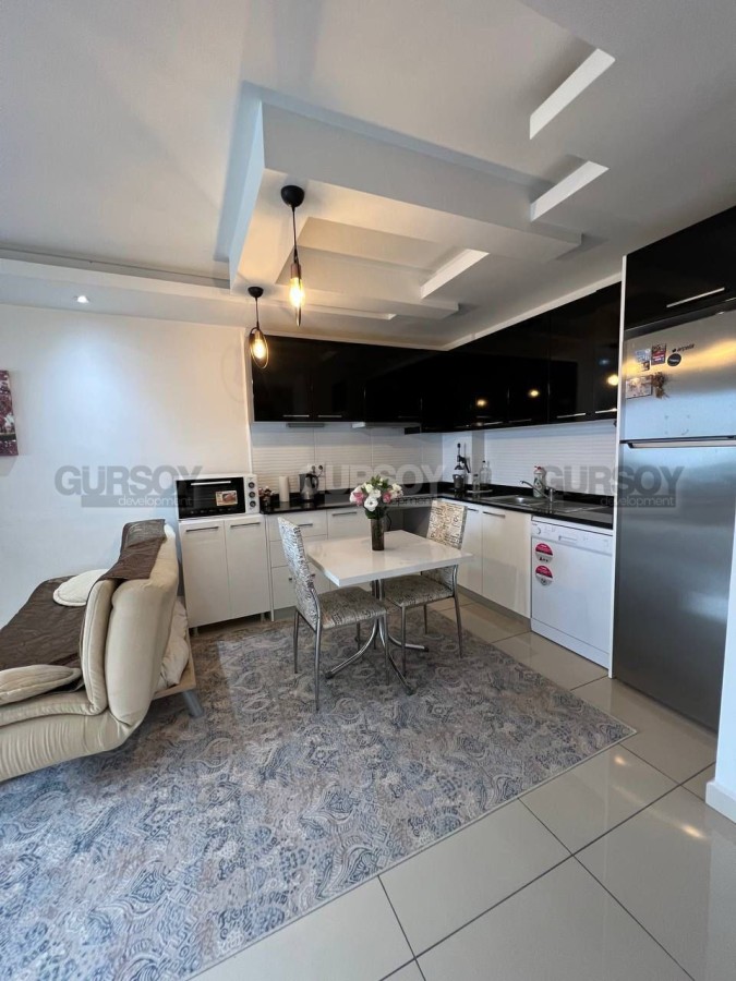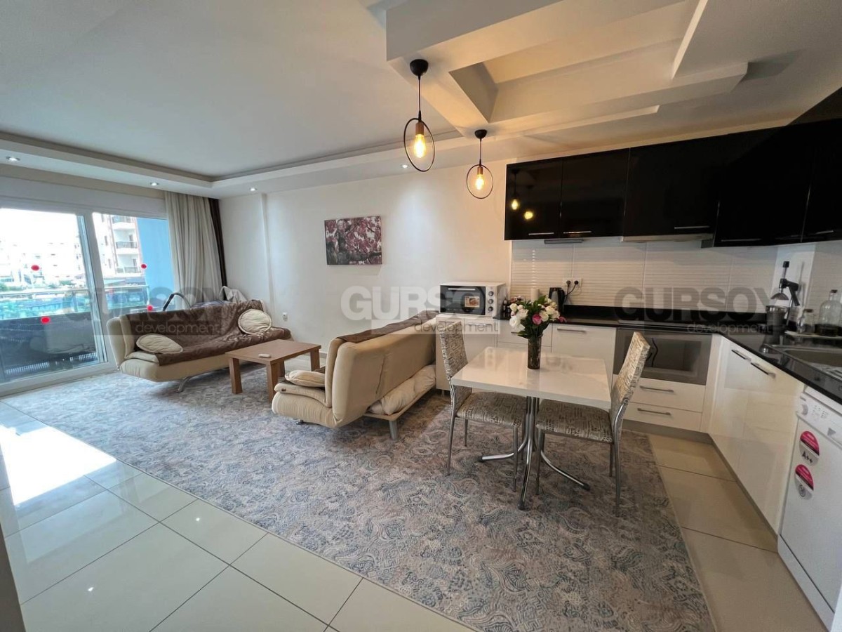 Продается меблированная квартира 1+1 с панорамным видом на территорию жилого комплекса. Просторная и уютная квартира площадью 65 м² расположена на 2 этаже современного жилого комплекса всего в 700 метрах от моря. Дом построен в 2012 году.