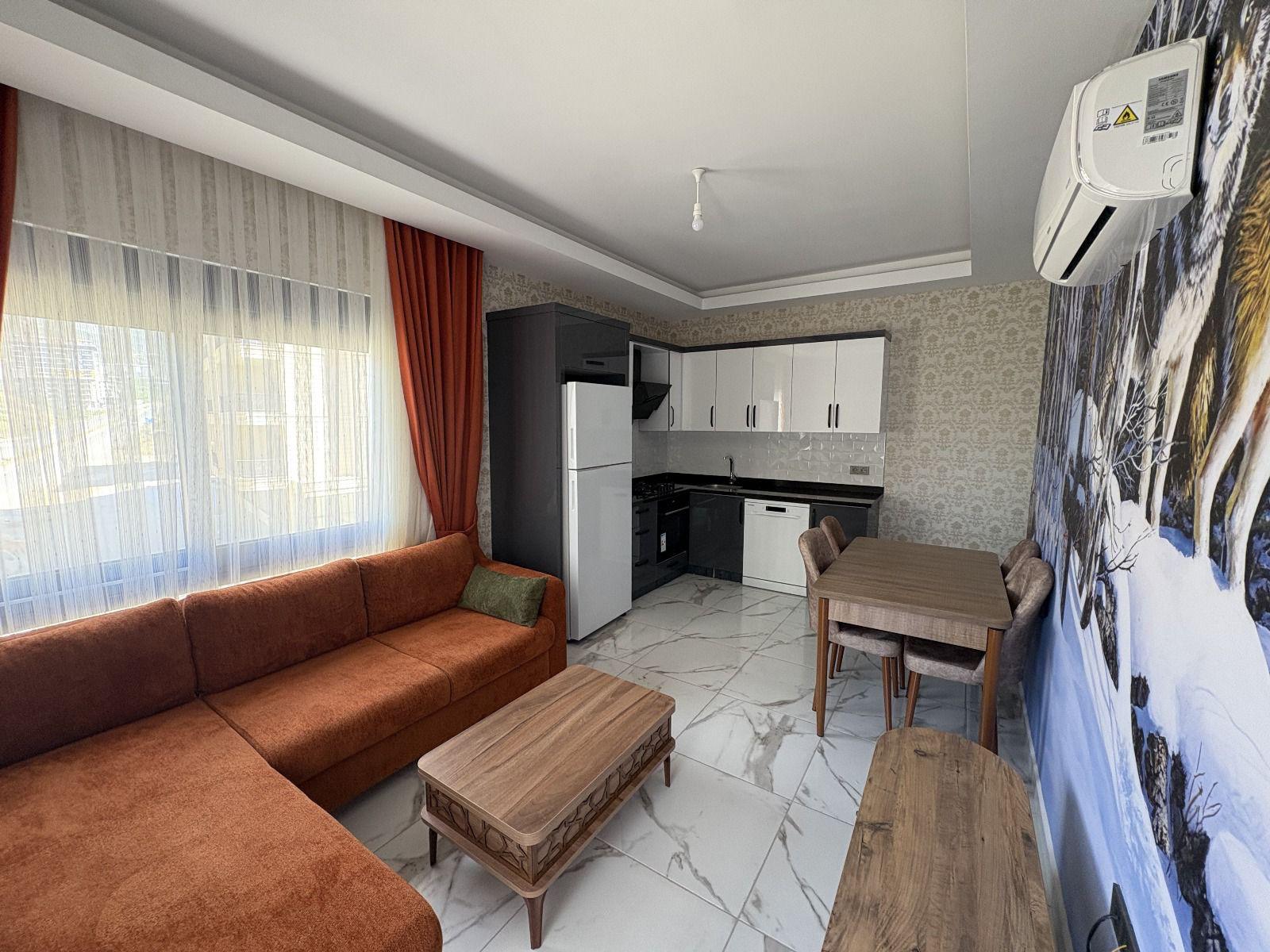 Уютная меблированная квартира 1+1 в современном комплексе в районе Mahmutlar — отличное решение как для проживания, так и для сдачи в аренду.