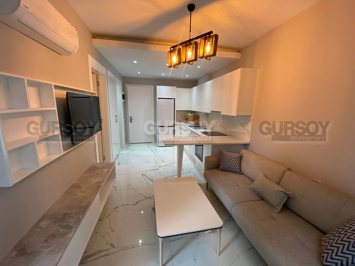 Продаётся уютная квартира планировки 1+1 площадью 50 м², полностью меблированная и готовая к заселению. Расположена на 1 этаже нового современного дома. Светлая гостиная с кухней открытого типа, спальня, ванная комната и балкон – всё в отличном состоянии. Комплекс был сдан год назад.