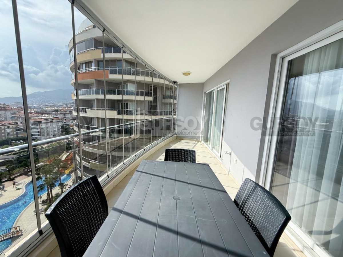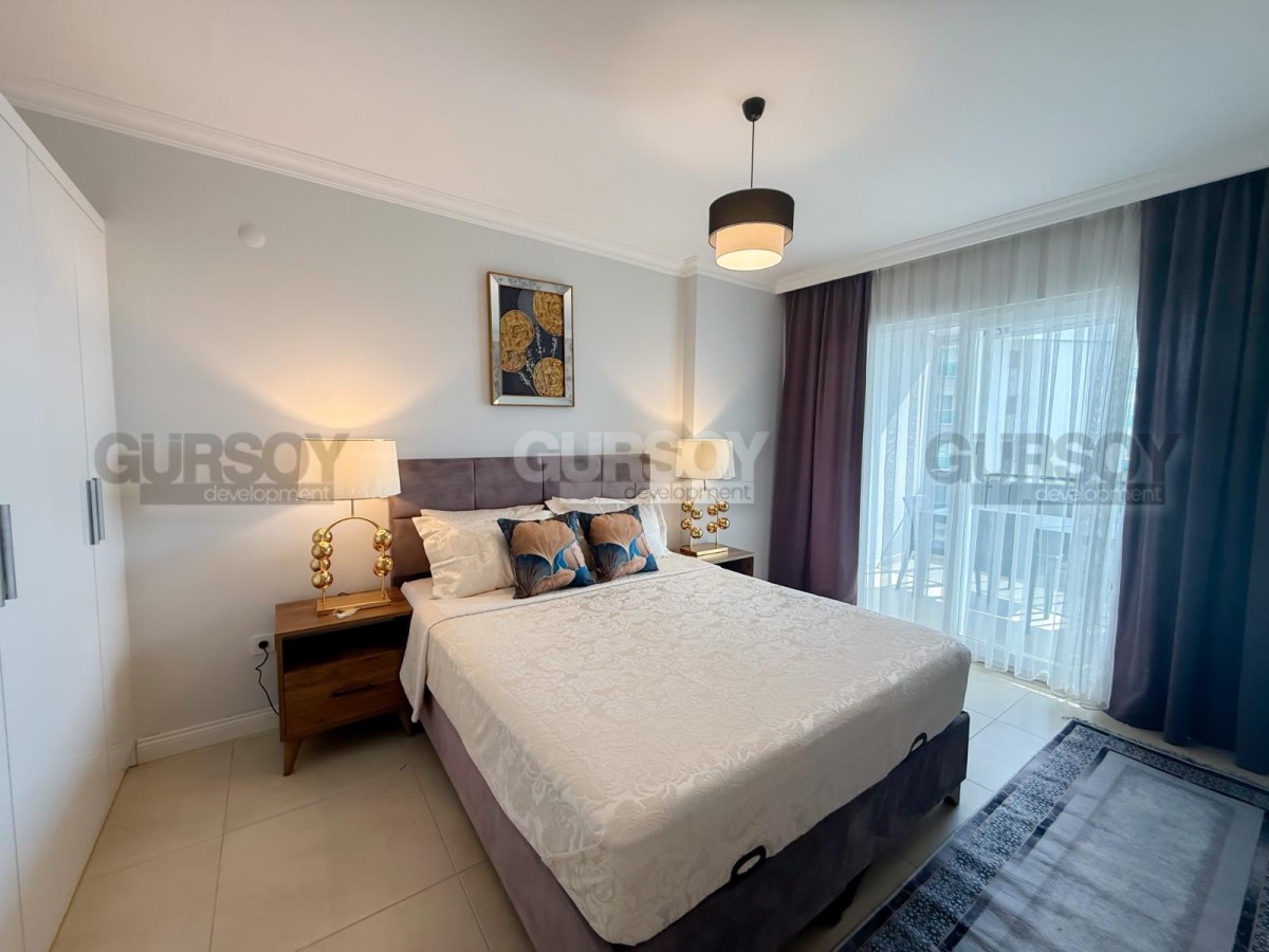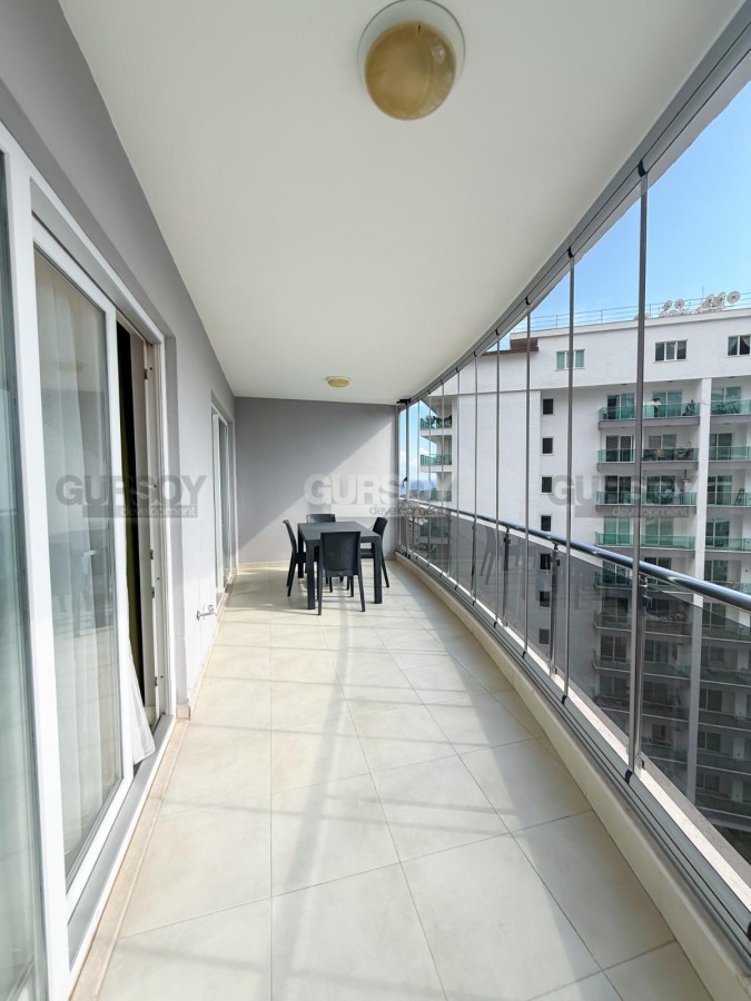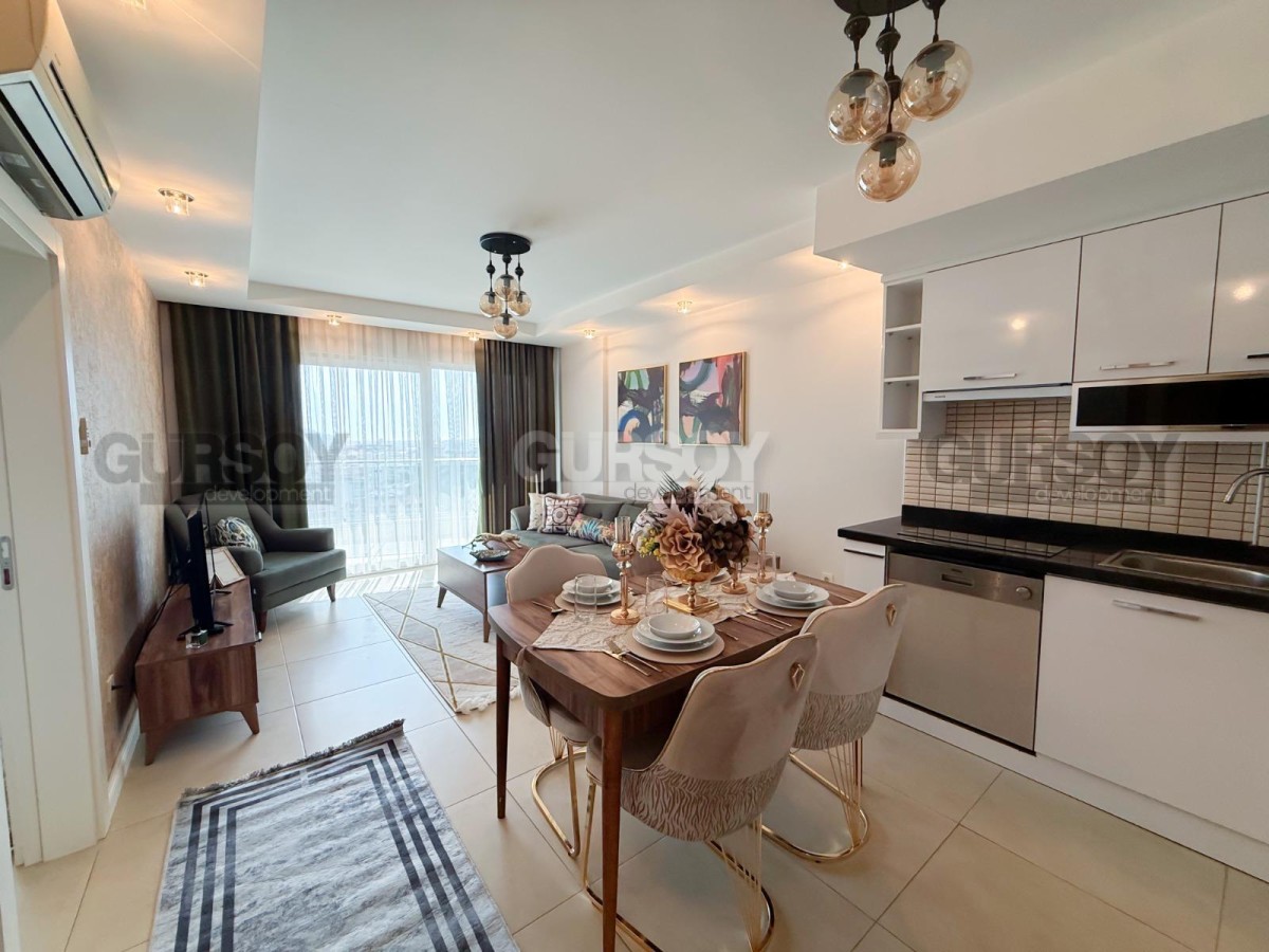Просторная квартира планировки 1+1 площадью 65 м² расположена на 7 этаже и выходит на юго-западную сторону. Из окон открывается великолепный панорамный вид на море, крепость и город. Планировка включает светлую гостиную с кухней открытого типа, спальню, санузел и уютный балкон.