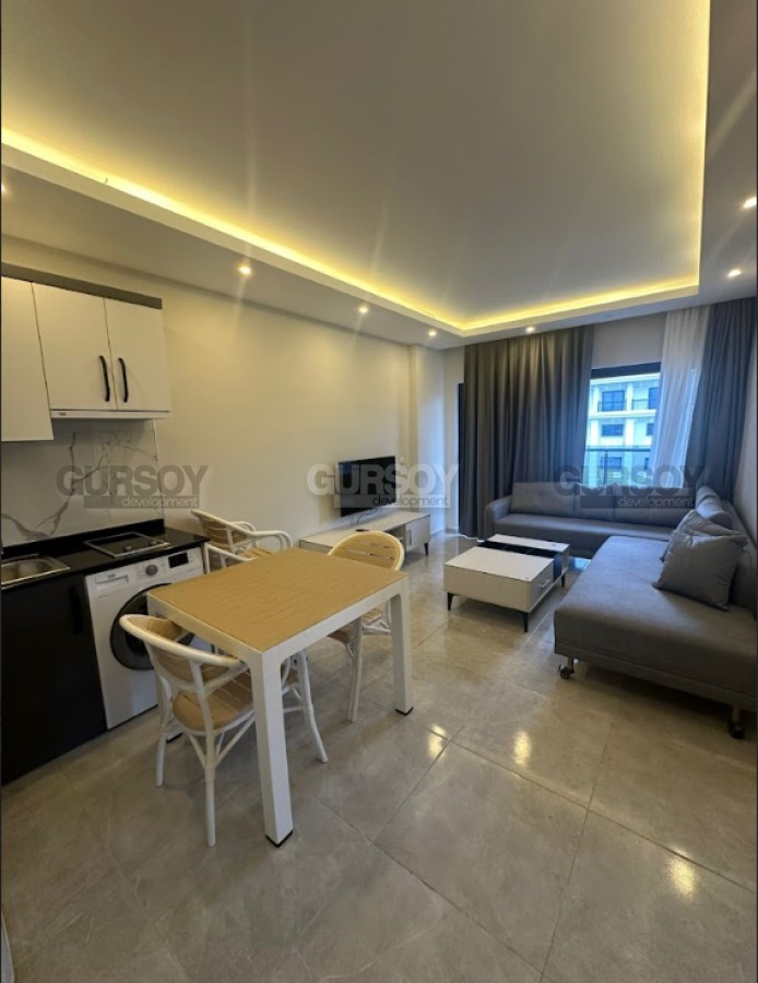 Квартира 1+1 в 50 метрах от моря с мебелью и техникой — отличное предложение для тех, кто мечтает о жизни рядом с пляжем в одном из самых живописных районов Каргыджак.