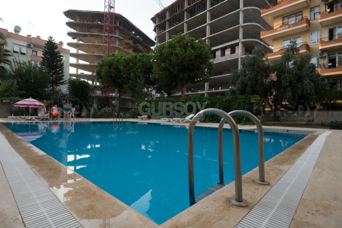Комплекс находится в самом центре Алании — до пляжа всего 600 метров, а вся городская инфраструктура, включая магазины, кафе, остановки транспорта и достопримечательности, в шаговой доступности. Очень удобное расположение как для жизни, так и для отдыха.