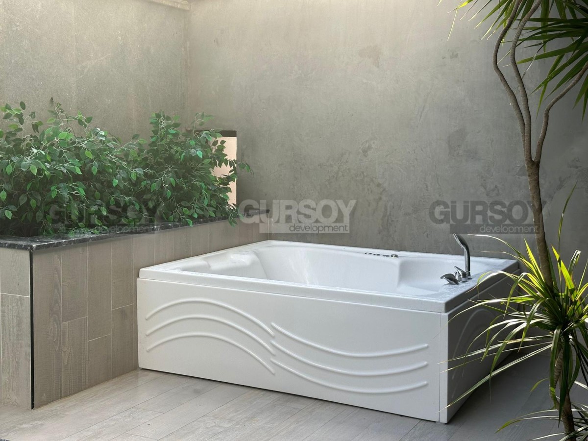 Жилой комплекс построен всего год назад и предлагает полный набор инфраструктуры: открытый и подогреваемый крытый бассейны, детский бассейн, джакузи, сауна, хамам, фитнес-зал и уютная зона с лобби-кафе. Также есть открытая и крытая парковка, генератор, круглосуточное видеонаблюдение и шифрованный вход в здание.