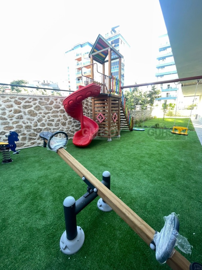 В комплексе предусмотрена полная инфраструктура, включая бассейн, детскую площадку, зону для барбекю, крытый бассейн, сауну, хамам, фитнес и детскую игровую комнату. Система видеонаблюдения обеспечивает безопасность жильцов. Расстояние до моря всего 600 метров, что делает комплекс идеальным местом для тех, кто ценит близость к пляжу.