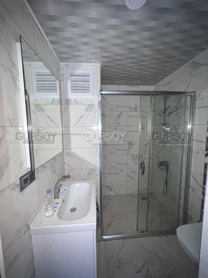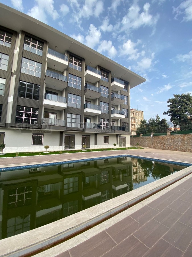 На продажу выставлена новая квартира 1+1 в современном жилом комплексе в районе Оба. Площадь квартиры 50 м2, а планировка 1+1 подразумевает наличие гостиной, совмещённой с кухней, спальни, ванной комнаты и балкона. Квартира продаётся в полной чистовой отделке - установлен кухонный гарнитур, напольное покрытие, окна ПВХ с двойным остеклением, входные и межкомнатные двери. Ванная комната оборудована душевой кабиной и сантехникой. Квартира расположена на 1-м этаже 5-этажного жилого комплекса 2022 года постройки. С балкона открывается вид на бассейн. Квартира выходит на западную сторону.