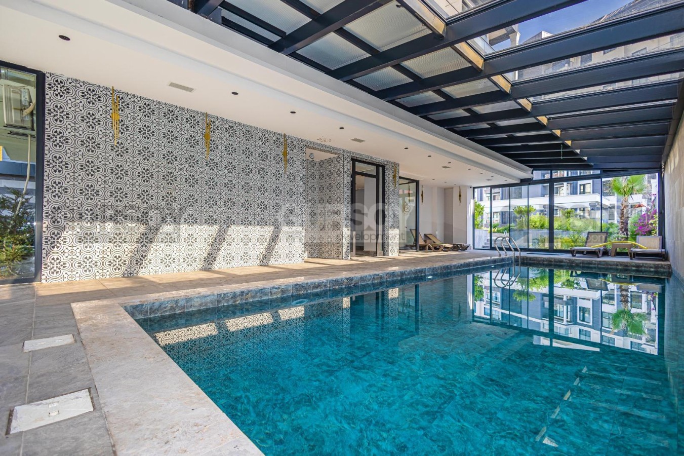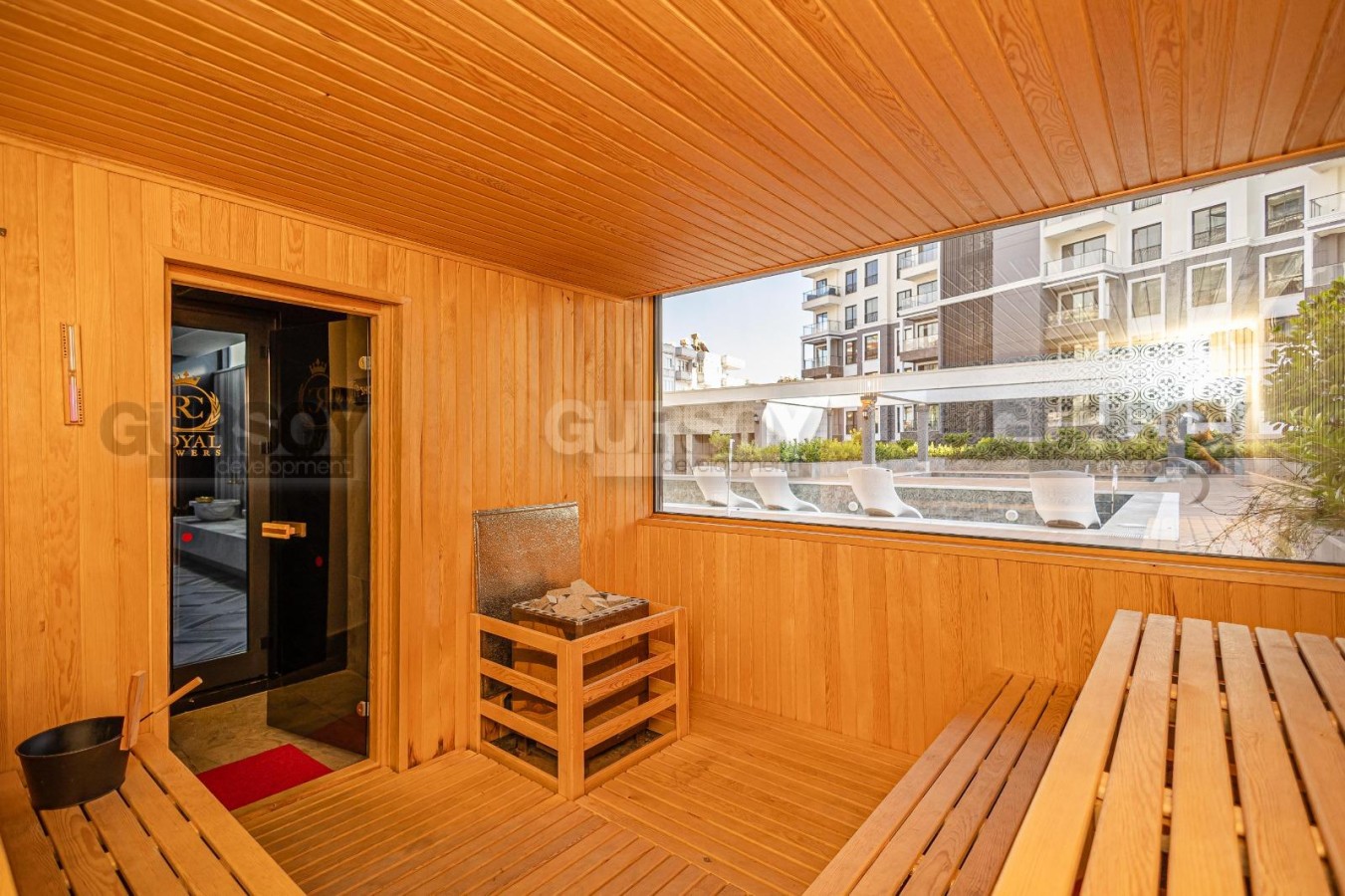 Жилой комплекс предлагает полный спектр инфраструктуры, в которую входят: бассейн, фитнес, сауна, хамам и детская площадка.