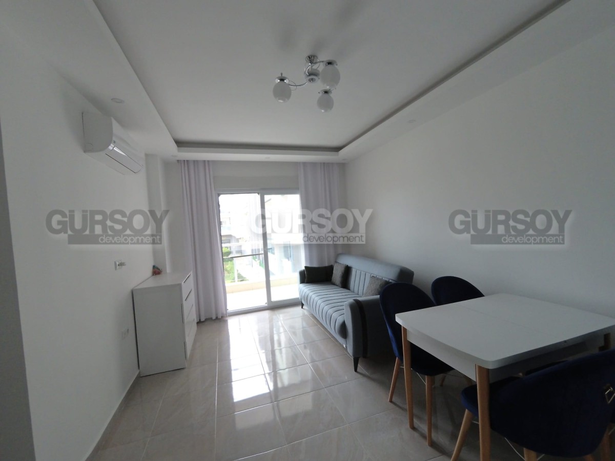 Представляем вашему вниманию квартиру планировки 1+1, в новом жилом комплексе, построенном в 2021 году, в живописном районе Конаклы. Эта квартира с американской кухней, которая совмещена с залом, и одной уютной спальней, представляет собой идеальное сочетание комфорта и удобства. В ванной комнате установлена современная мебель и сантехника. Апартаменты продаются полностью укомплектованные мебелью и техникой известной фирмы Веко, что делает ее готовой для проживания сразу после приобретения.