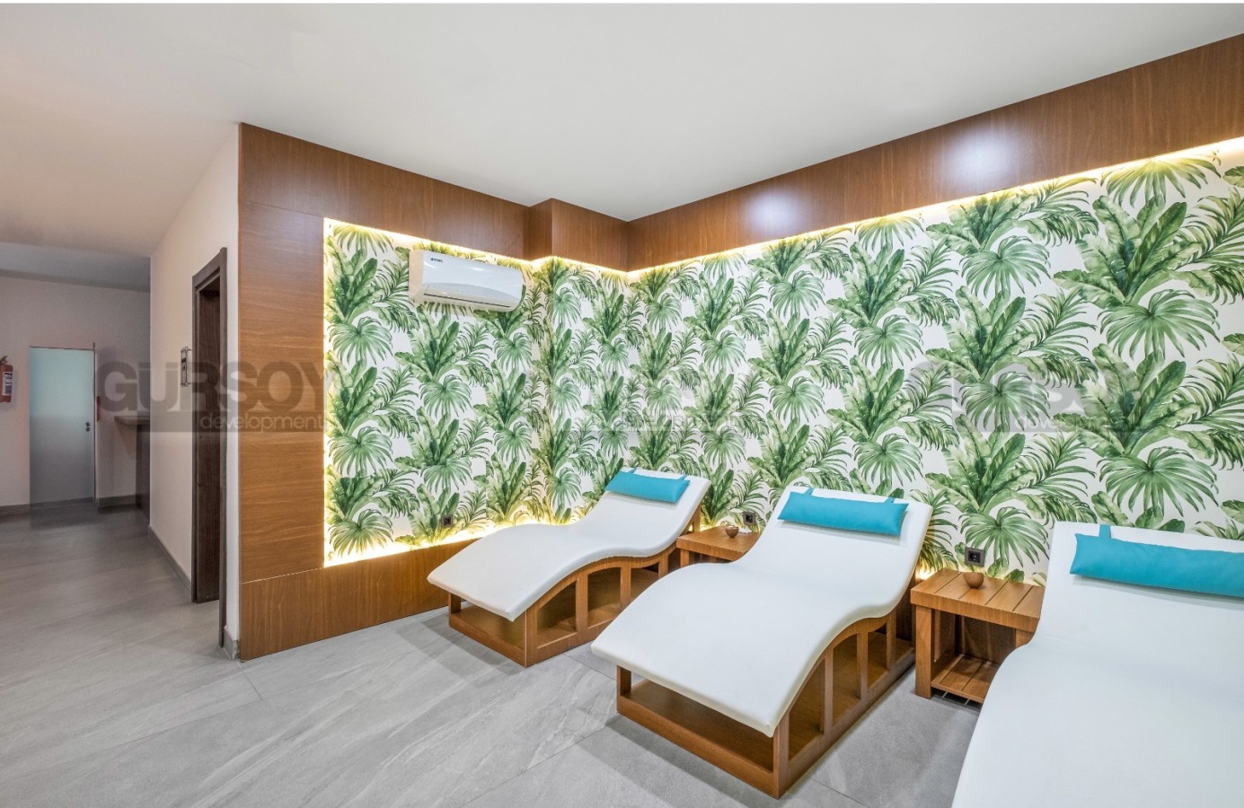 Жилой комплекс выполнен в формате курортного проекта с богатой инфраструктурой для отдыха и жизни. На территории предусмотрены открытый и крытый бассейны, SPA-зона, хамам, сауна, парная, комнаты для массажа и релакса, фитнес-зал, кинотеатр, а также детская игровая комната и детская площадка. Для комфорта жителей есть сад, камелия, парковка, шифрованные входные двери, видеонаблюдение и охрана, что создаёт безопасную и ухоженную среду проживания.