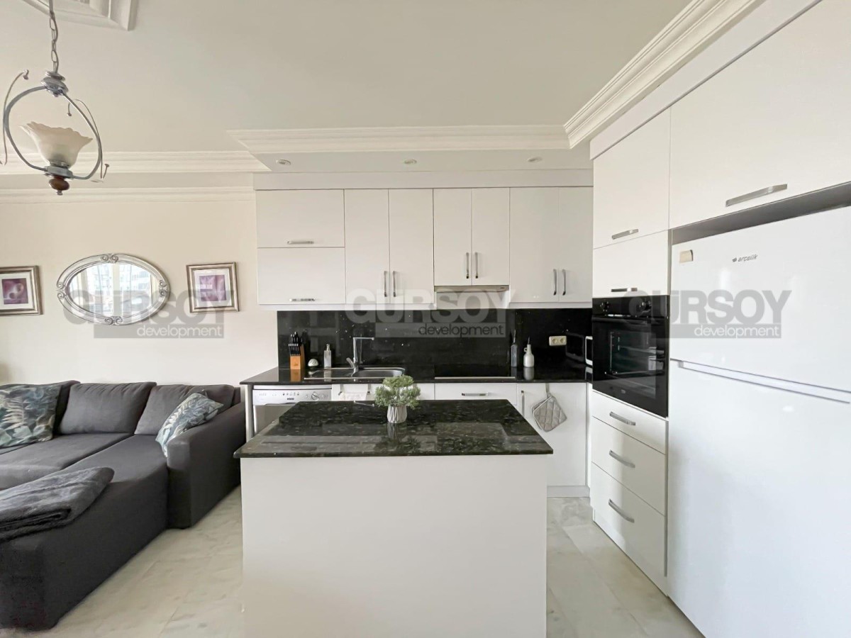 На продажу предлагается стильная квартира с изысканным интерьером в светлых тонах, расположенная на 6-м этаже. Квартира имеет планировку 2+1, общей площадью 110 м², и включает две спальни, гостиную, объединенную с кухней, две ванные комнаты, одну из которых оснащена джакузи, а также два застекленных балкона. Балконы можно использовать как дополнительные жилые зоны, рабочие кабинеты или места для отдыха. Квартира продается с современной мебелью, которая включена в стоимость. Особенностью является удобная прихожая. Кадастровая стоимость апартаментов позволяет оформить вид на жительство (ВНЖ).