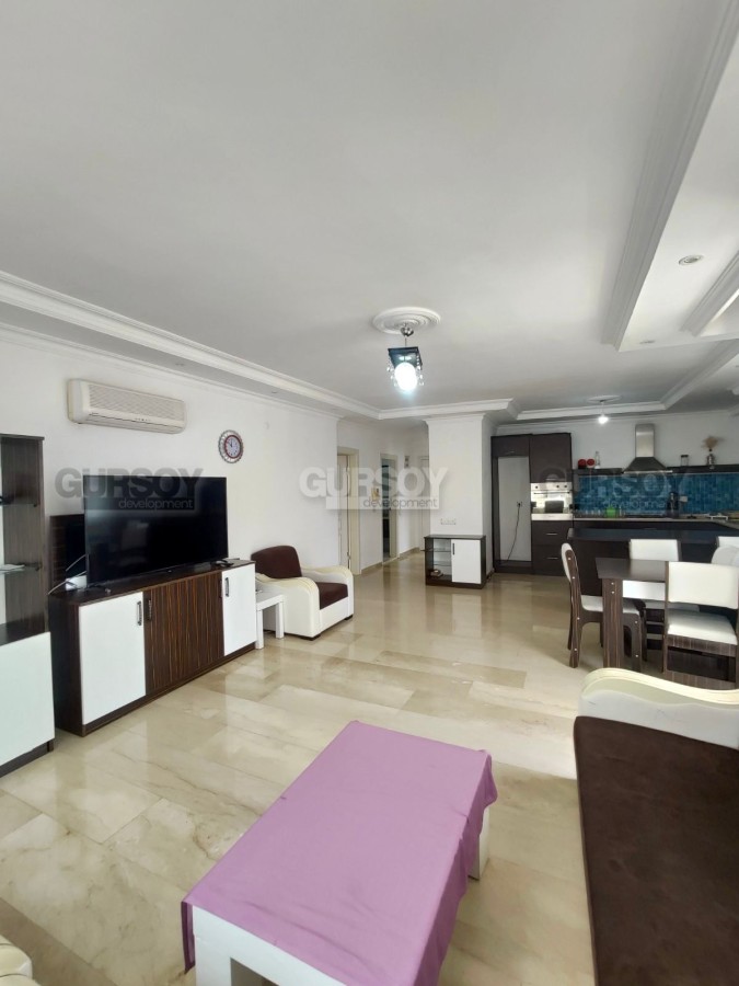 Продаётся меблированная квартира 2+1 общей площадью 100 м², расположенная на 4-м этаже современного жилого комплекса. Планировка включает просторную гостиную с кухней, две спальни, 2 ванные комнаты и 2 балкона, что обеспечивает комфорт как для семьи, так и для отдыха. Квартира светлая, ухоженная и полностью готова к проживанию или сдаче в аренду.