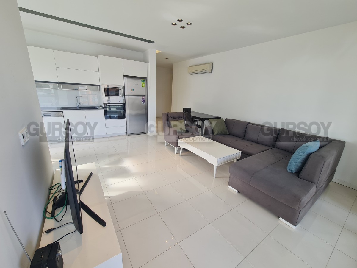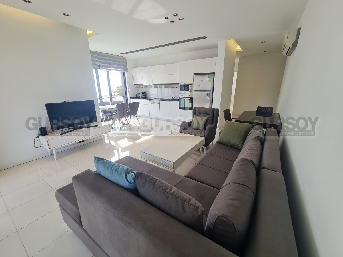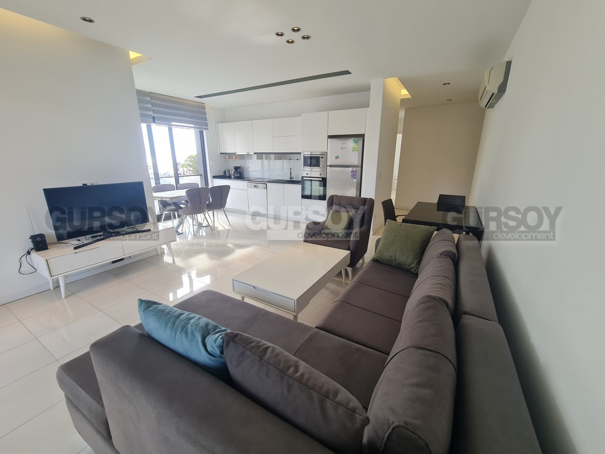 Просторная квартира 2+1 площадью 110 м² находится на 3 этаже и ориентирована на юго-восток. Внутри — светлая гостиная с кухней открытого типа, две спальни, два санузла с душем и балкон. Квартира полностью меблирована и укомплектована техникой.