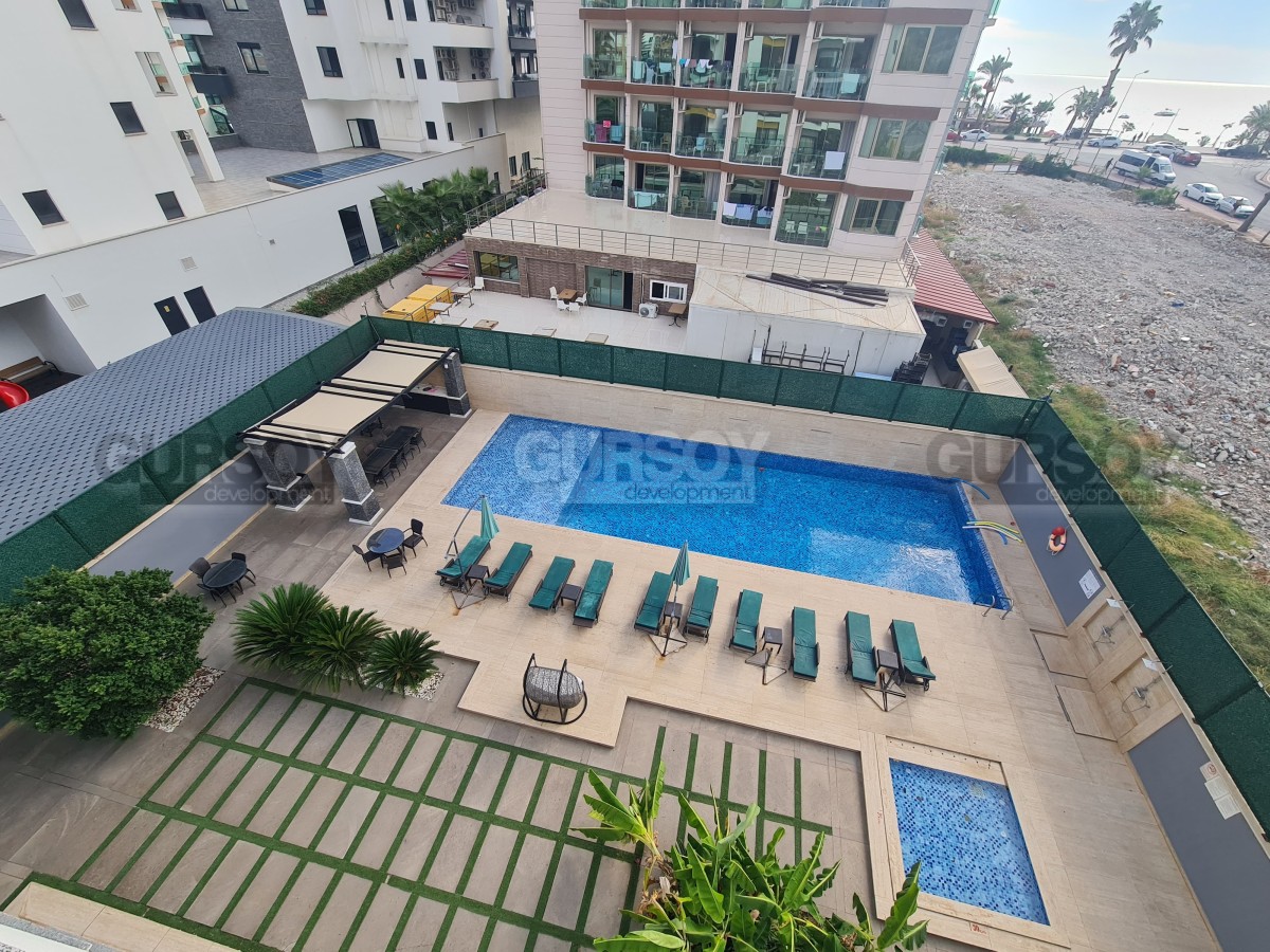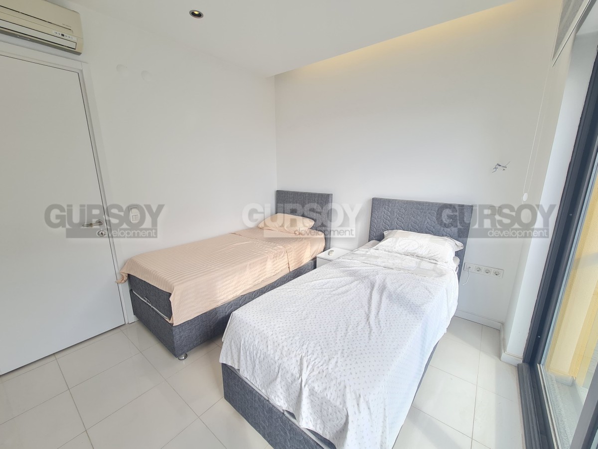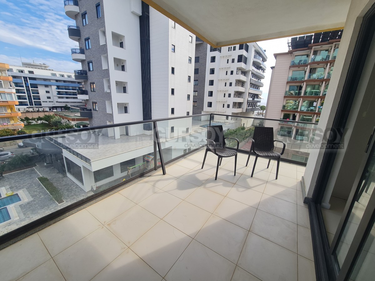 Просторная квартира 2+1 площадью 110 м² находится на 3 этаже и ориентирована на юго-восток. Внутри — светлая гостиная с кухней открытого типа, две спальни, два санузла с душем и балкон. Квартира полностью меблирована и укомплектована техникой.