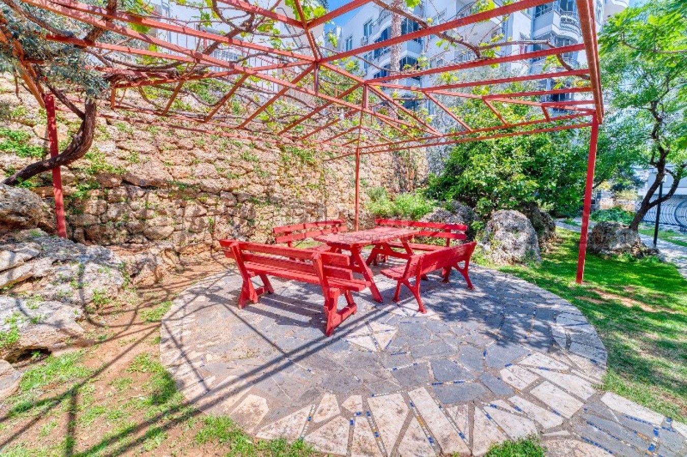 На территории комплекса имеется бассейн и беседка, а расстояние всего 500 метров до моря делает это место идеальным выбором для тех, кто мечтает о жизни вблизи пляжа.