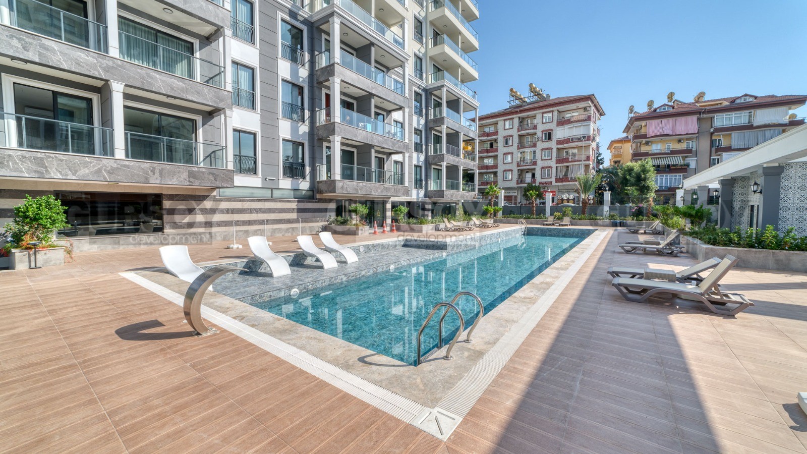 Жилой комплекс расположен в центральной части Алании, в районе пляжа Клеопатра. Вся необходимая инфраструктура — больницы, банки, школы, магазины, супермаркеты, кафе и рестораны — находится в пешей доступности. Рядом расположен рынок свежих морепродуктов и морепродуктов. До знаменитого пляжа «Клеопатра» с Голубым флагом всего 850 метров.