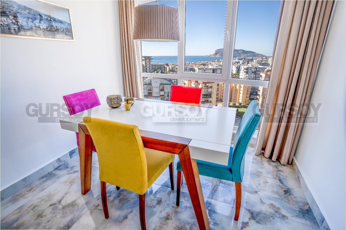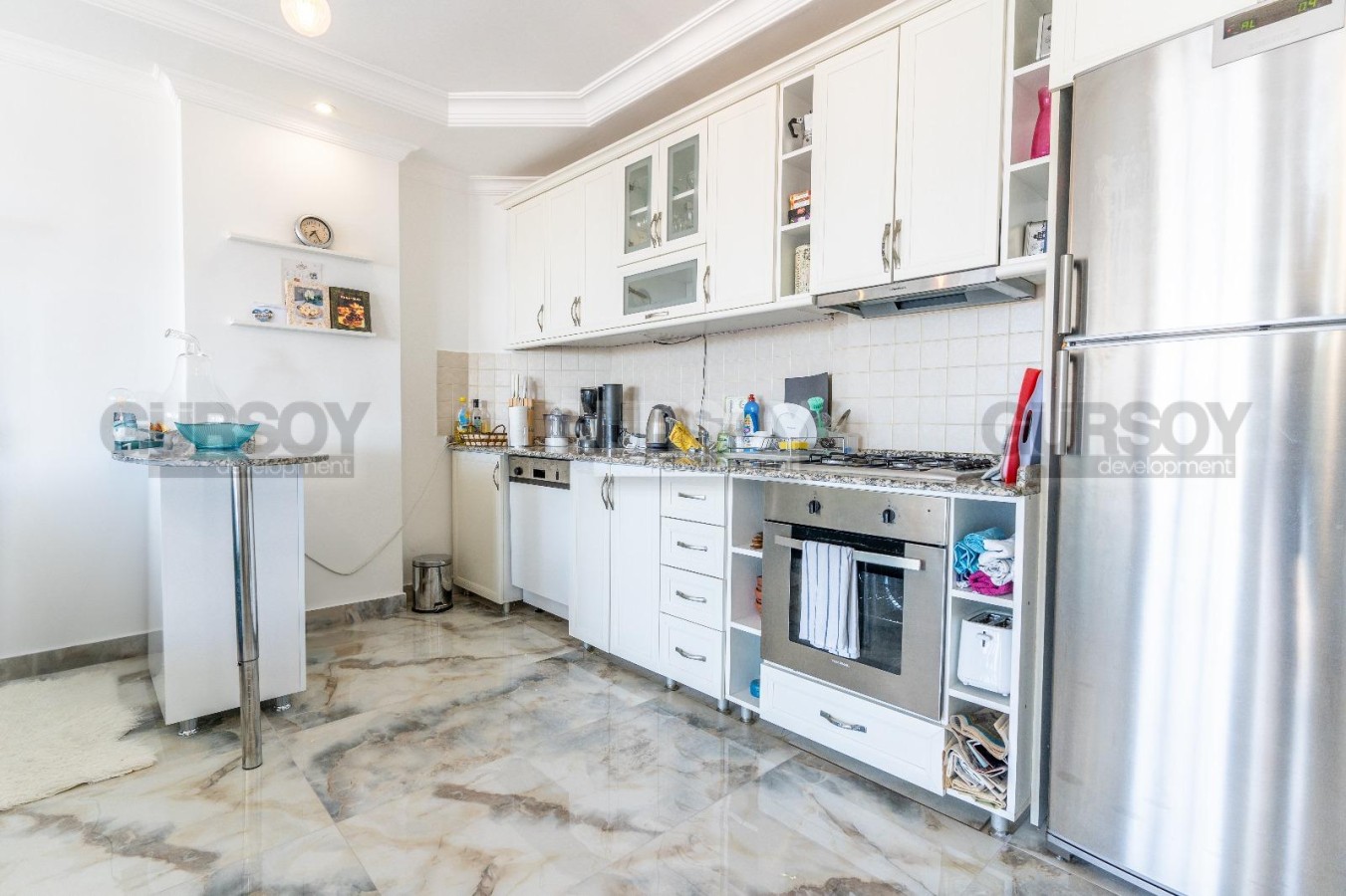 Просторная и полностью меблированная квартира 2+1 расположена на 8 этаже, с общей площадью 110 м². Планировка включает в себя две спальни, гостиную с кухонной зоной, один балкон и два санузла. Из окон и балкона открывается прямой вид на море. Квартира продаётся с мебелью и техникой, полностью готова к проживанию.