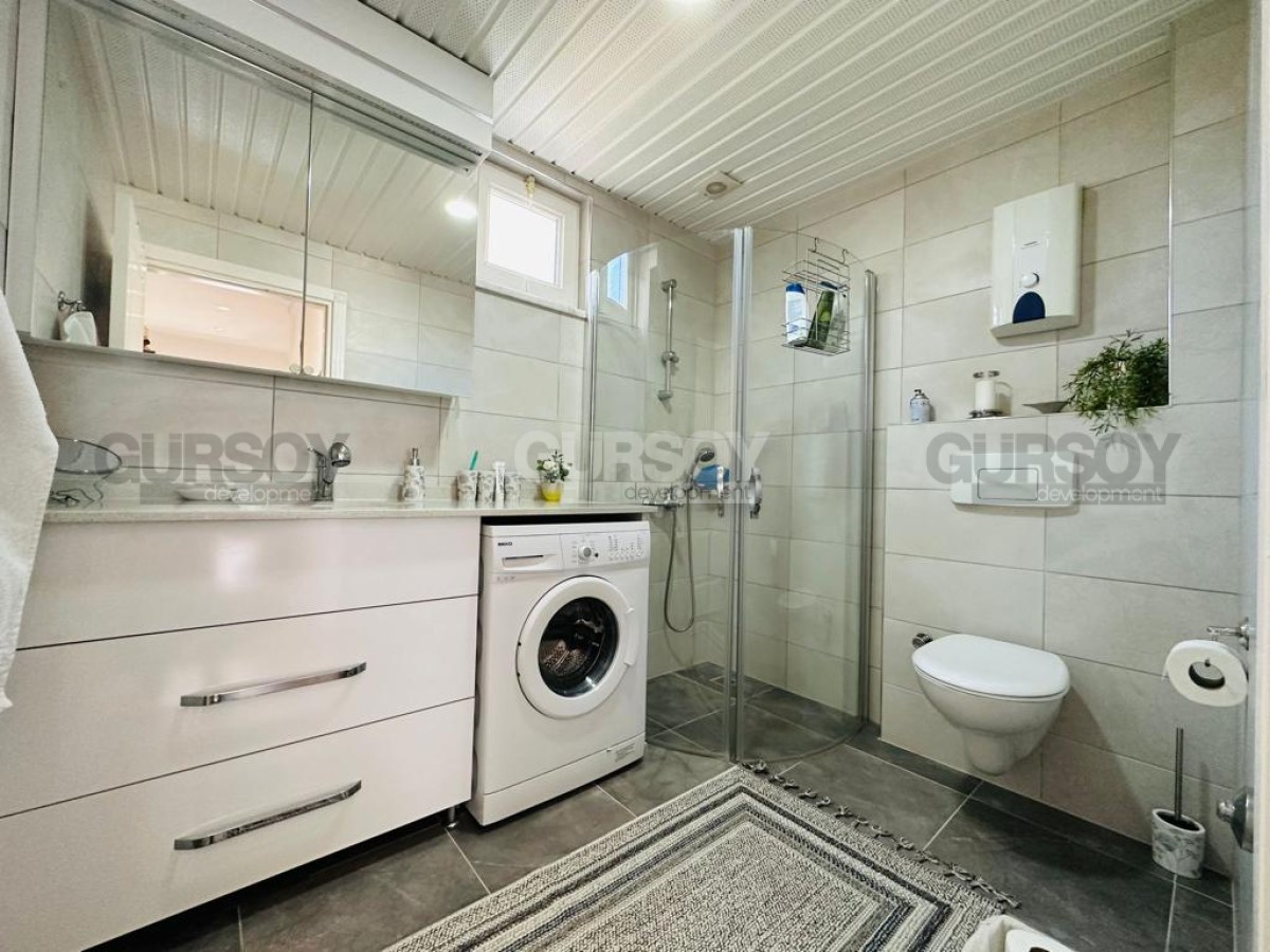 Предлагается к продаже просторная квартира площадью 90 квадратных метров с планировкой 2+1. Она расположена на первом высоком этаже здания и имеет привлекательное расположение на южной стороне, что позволяет наслаждаться ярким солнечным светом и создает приятную атмосферу. Квартира также предлагает частичный вид на море и прекрасный вид на зеленую территорию, что придает ей дополнительный очарование. Квартира продается полностью укомплектованной мебелью и бытовой техникой, что делает ее готовой к немедленному заселению.