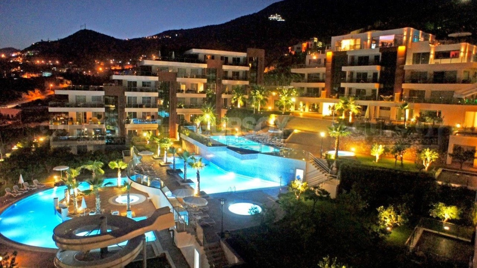Комплекс также обладает богатым выбором развлечений и удобств, предлагая вам активный образ жизни. Великолепный открытый бассейн станет вашим уголком расслабления, а большая горка принесет радость вам и вашим детям. Дополнительно в вашем распоряжении бассейн, генератор, лифт, охрана, фитнес-центр, сауна, кинотеатр и автостоянка, чтобы удовлетворить все ваши потребности и желания.