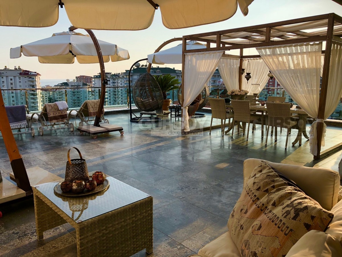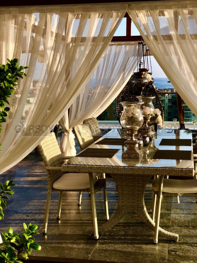 Квартира расположена на третьем этаже, имеет площадь 200 кв.м. Планировка предлагает просторные 3 комнаты, прекрасно оформленную гостиную и 2 роскошные ванные комнаты. Но настоящей изюминкой этого жилища является огромная терраса, которая просто завораживает своей величественностью. Здесь вы сможете наслаждаться солнцем и свежим воздухом на протяжении всего года.