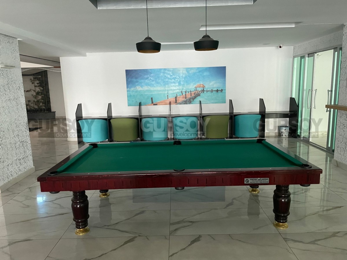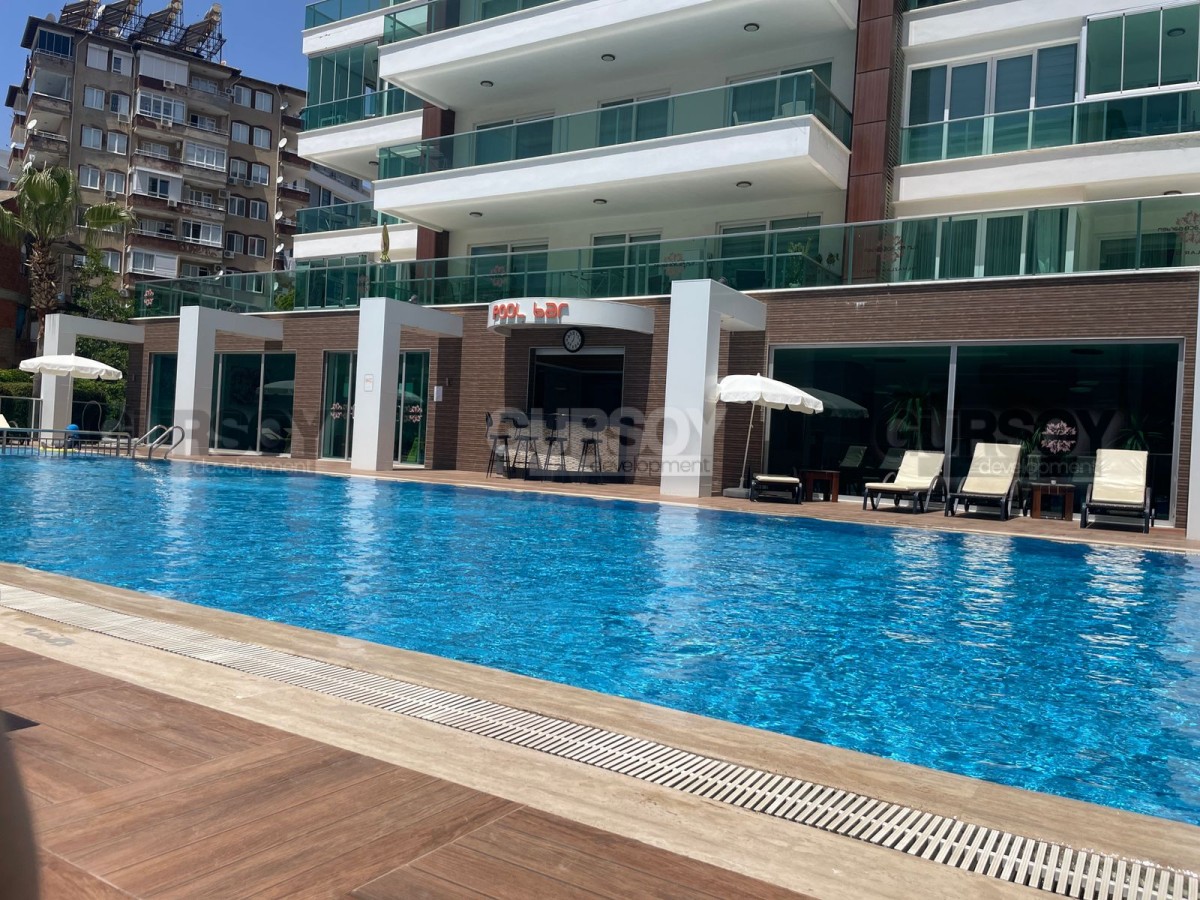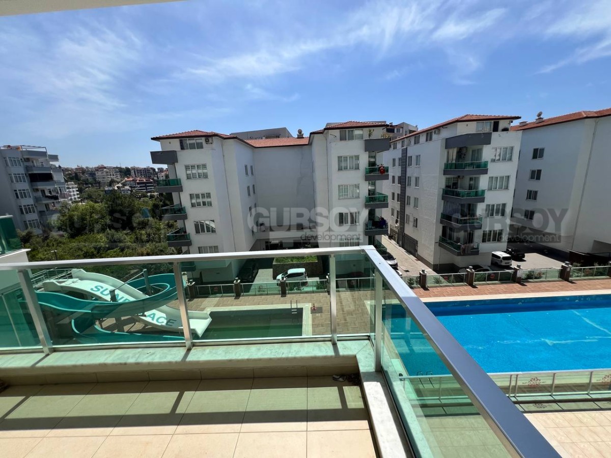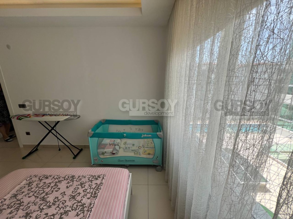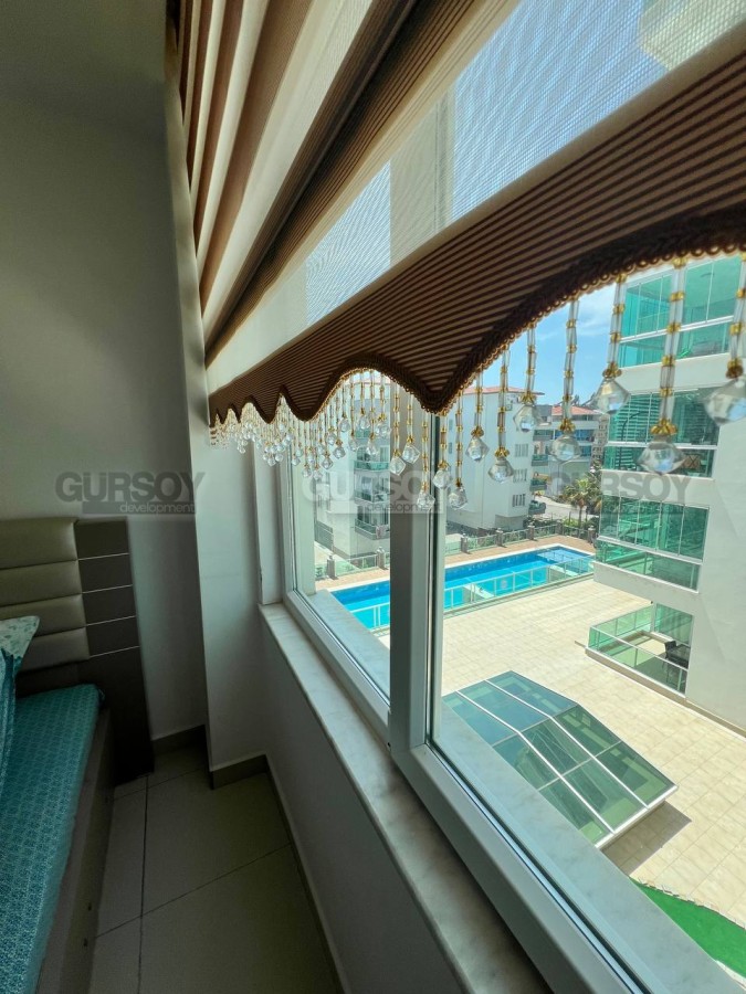 Квартира с видом на открытый бассейн и территорию комплекса. Инфраструктура комплекса включает открытый и крытый бассейны, сауну, хамам, паровую комнату, фитнес-зал, теннисный корт и спортивные площадки, бильярд и настольный теннис, кафе-бар, зону барбекю, камелию, детскую площадку, открытый и крытый паркинг, лифт, генератор и охрану. Территория благоустроена и подходит для проживания круглый год.