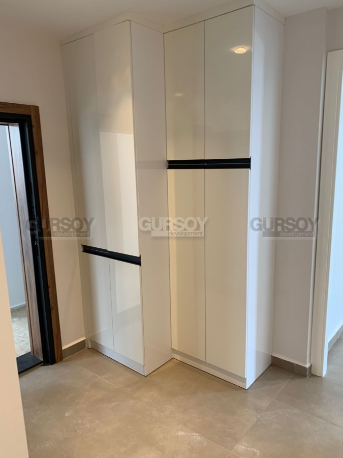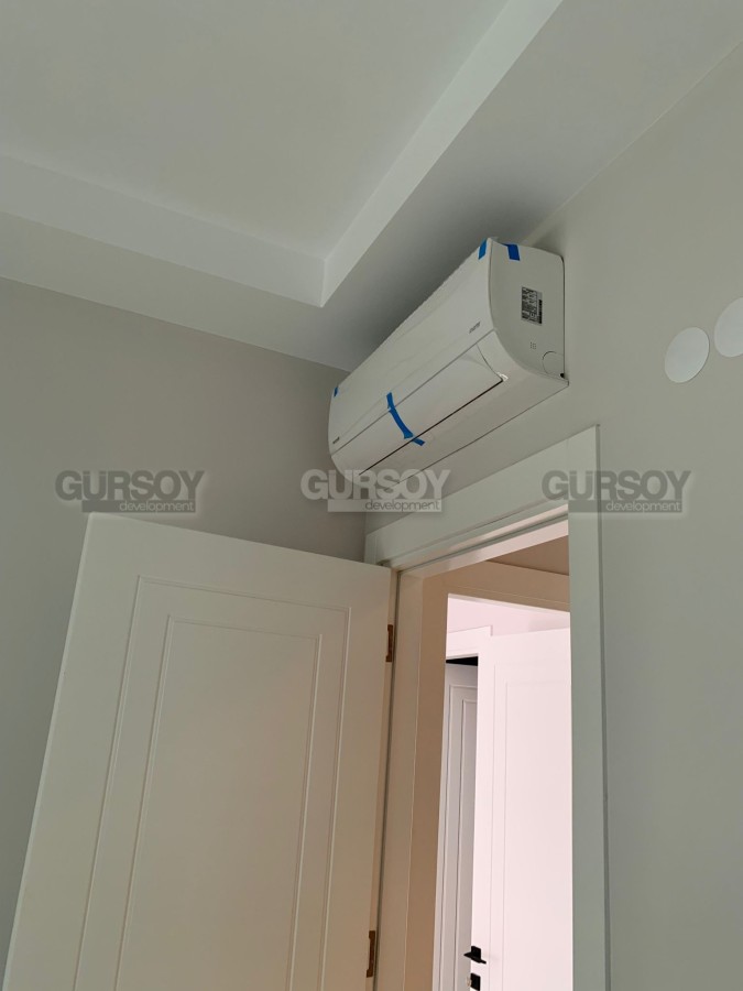 Квартира линейная и предлагает уютное пространство для комфортного проживания. Важно отметить, что квартира уже укомплектована техникой, что облегчает вашу жизнь после переезда. Вам остается только приобрести мебель, и наш послепродажный сервис Gursoy Development с радостью окажет вам помощь в этом вопросе.
