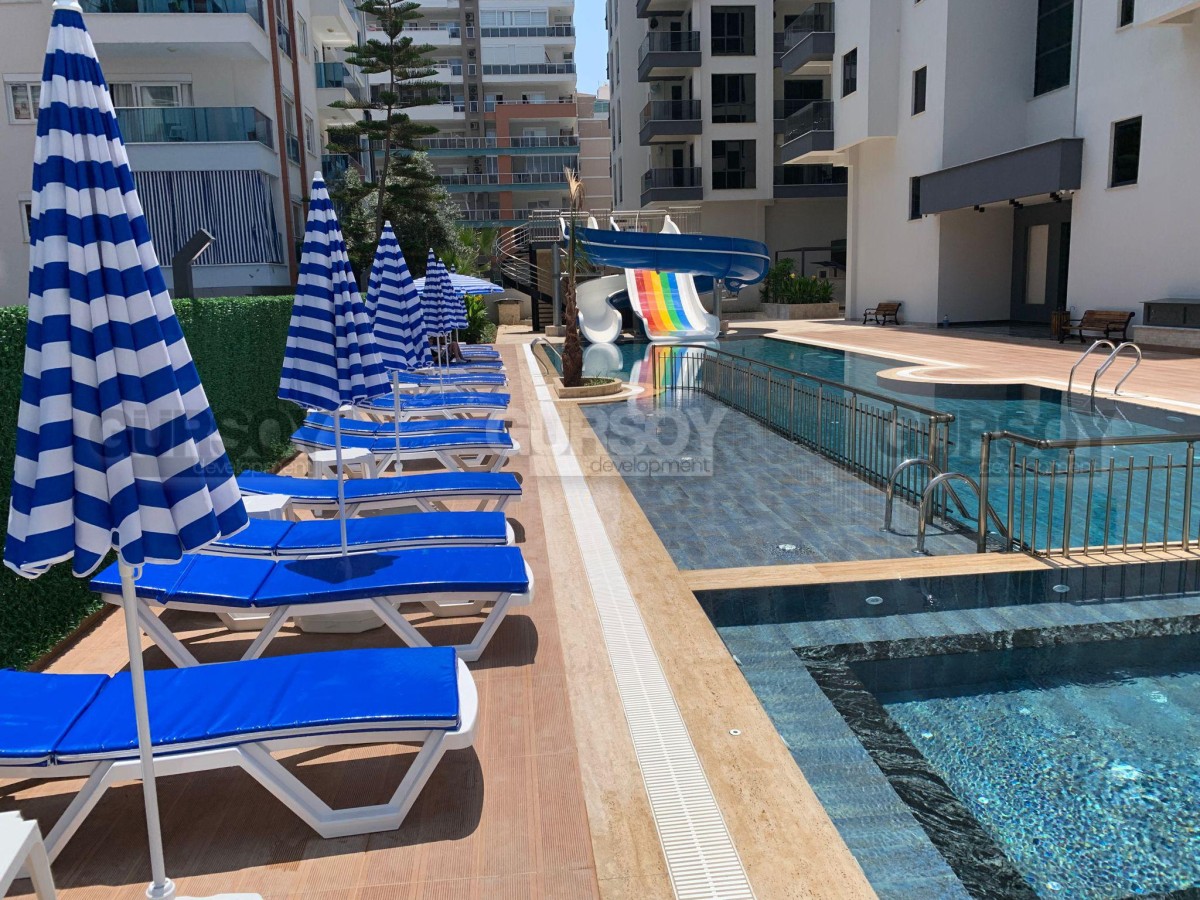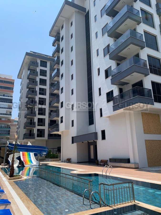 Комплекс, в котором располагается квартира, только что сдался в эксплуатацию, что гарантирует вам современные и высококачественные условия проживания. Он занимает привлекательное местоположение в самом центре района Махмутлар, всего в ста метрах от берега моря. Это дает вам возможность наслаждаться кристально чистым морским воздухом и купаться в море всегда, когда вам захочется.