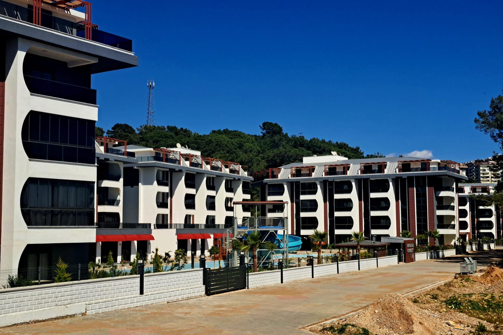 Жилой комплекс расположен в окружении соснового леса и предлагает богатую инфраструктуру: открытый и крытый бассейны с джакузи, аквапарк, сауна, турецкий хамам, паровая комната, фитнес-зал, кинотеатр, детские площадки (открытая и крытая), генератор, услуги консьержа, трансфер и круглосуточная охрана.
