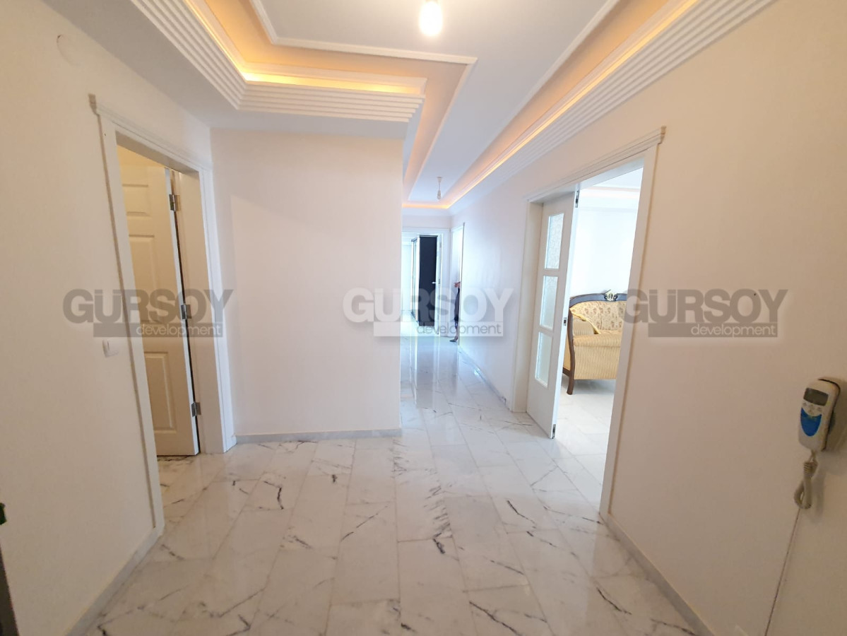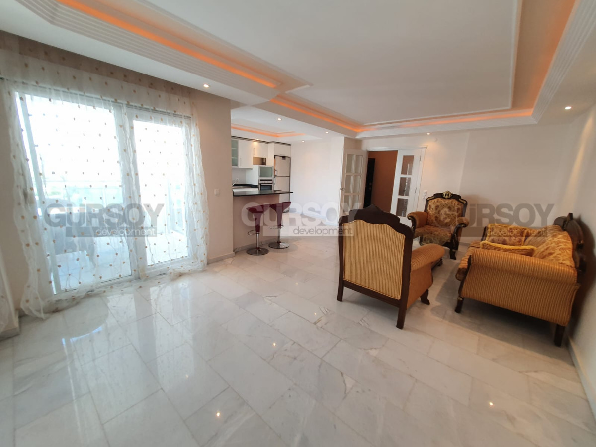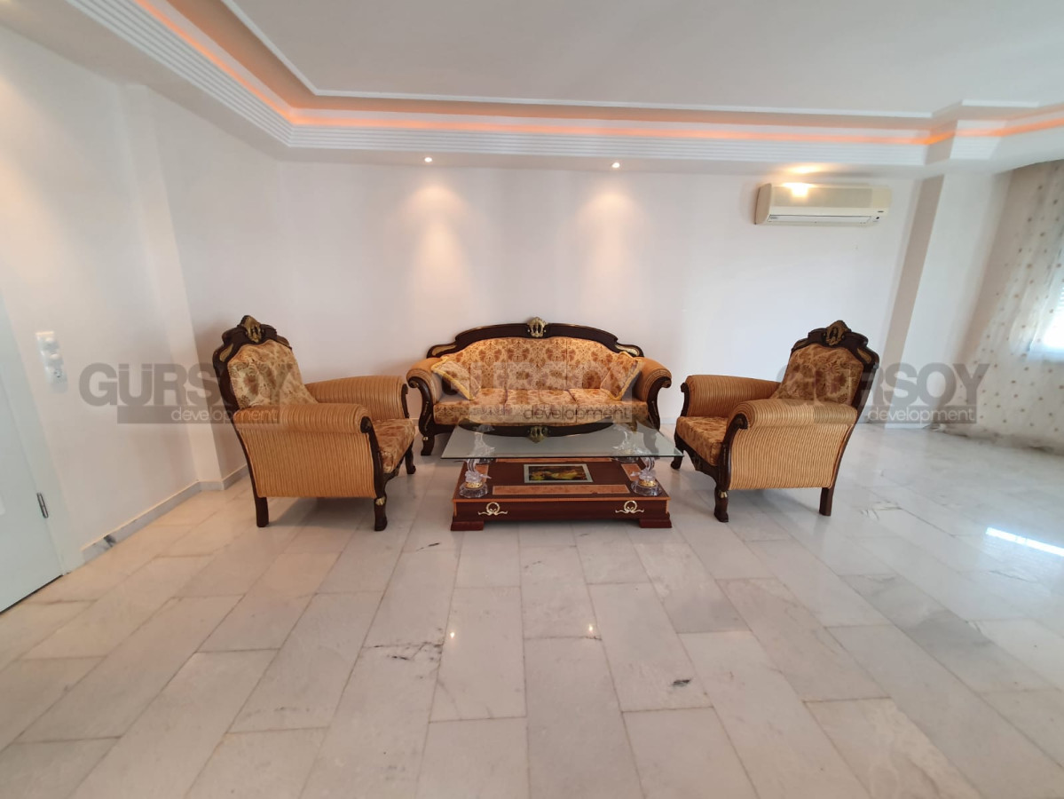 Планировка квартиры 2+1, включает наличие прихожей, двух спален, двух ванных комнат, двух больших балконов, и гостиной с американского типа кухней. Площадь составляет 125 кв.м. Располагается на 5 этаже. Имеющаяся мебель остается новым хозяевам.