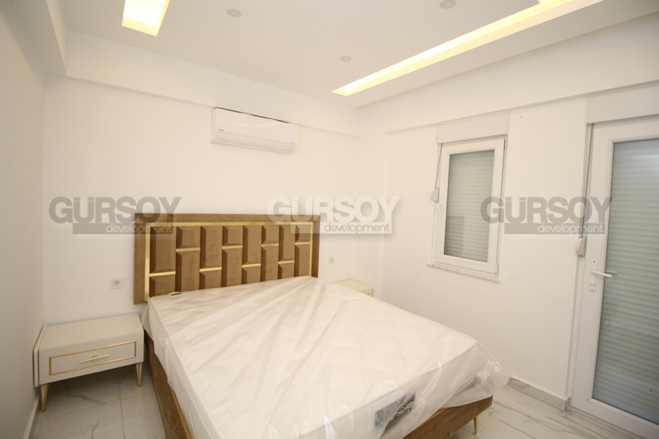 Квартира является частью комплекса городского типа, расположена на высоком первом этаже и имеет площадь 135 кмв.м. и планировку с тремя спальнями, гостиной, совмещенной с кухней, двумя санузлами, двумя балконами. Она полностью укомплектована новой мебелью, произведен полный ремонт, установлен современный кухонный гарнитур с вместительными шкафами и бытовая техника марки ARÇELİK.