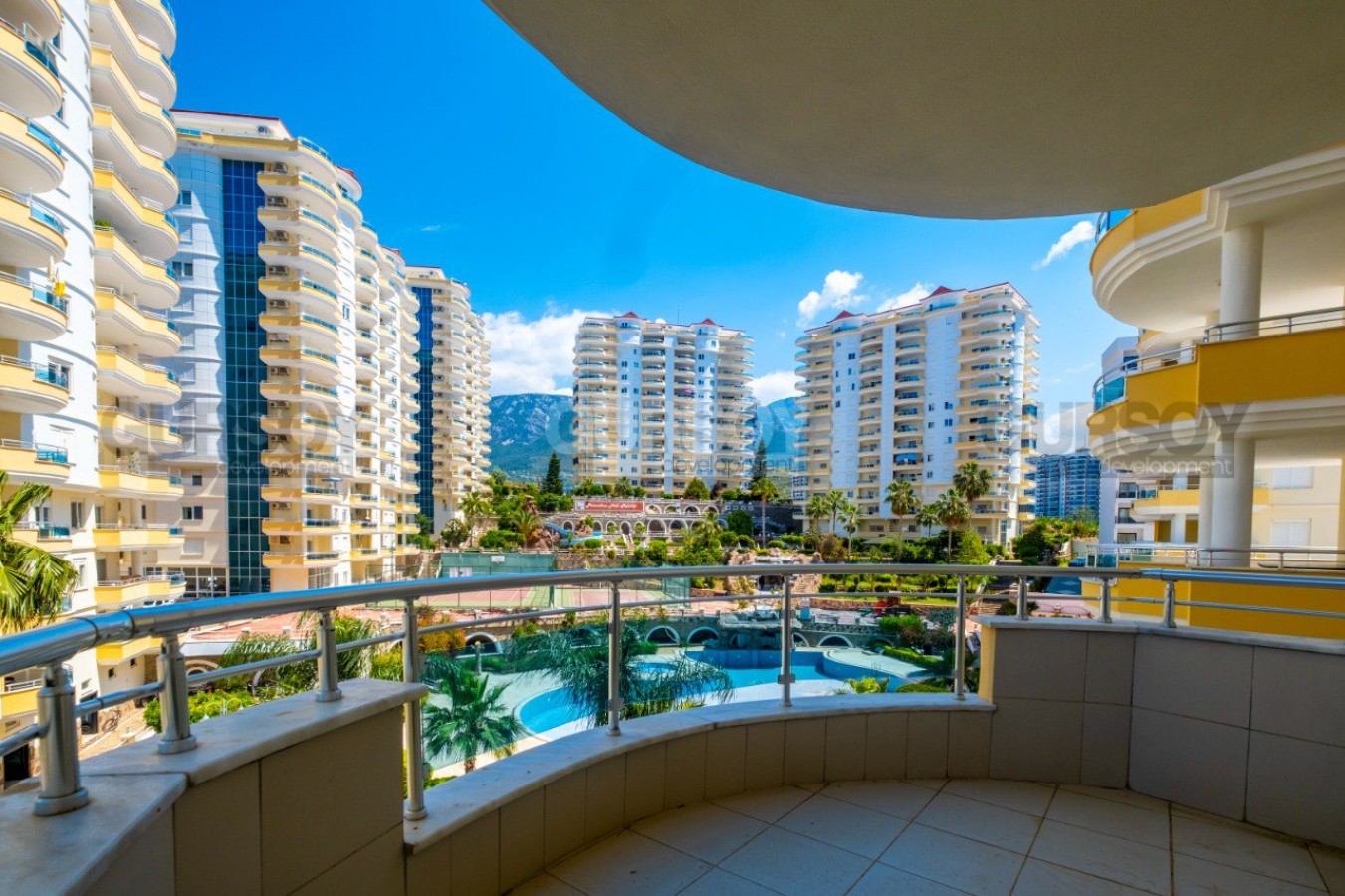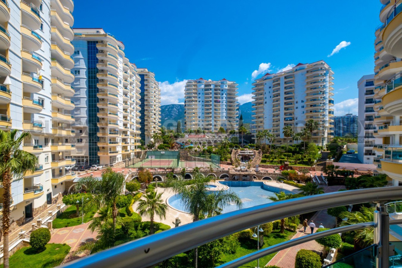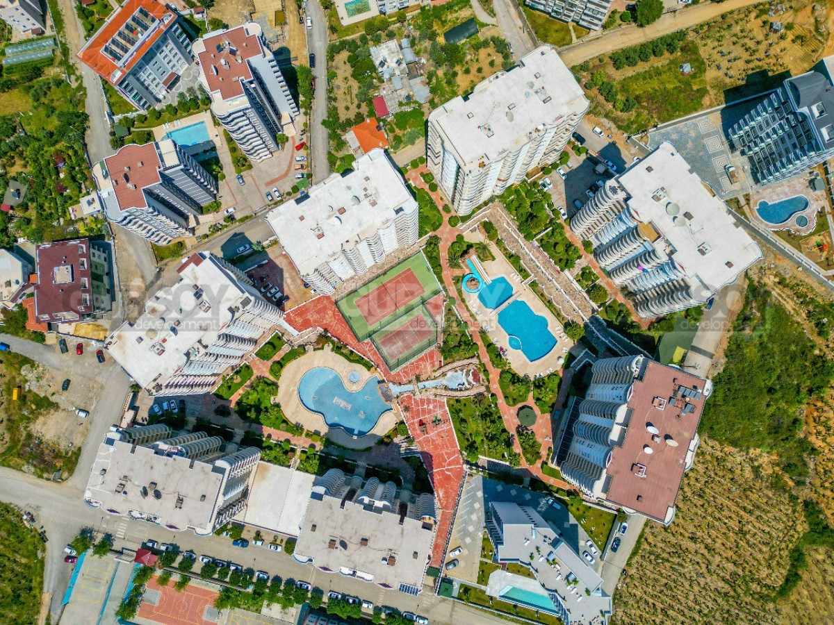 Прекрасный жилой комплекс с собственной первоклассной инфраструктурой, расположен на тихой живописной возвышенности в 1200 м от моря и пляжа. Комплекссостоит из семи 14-этажных корпусов с квартирами различной планировки и площади на большой ухоженной территории с красивым ландшафтным садом, большими бассейнами, теннисными кортами и детской площадкой.