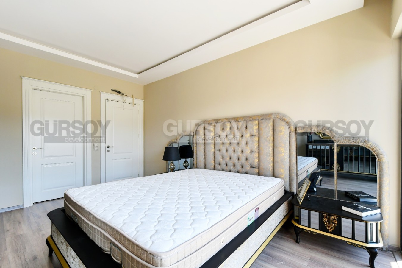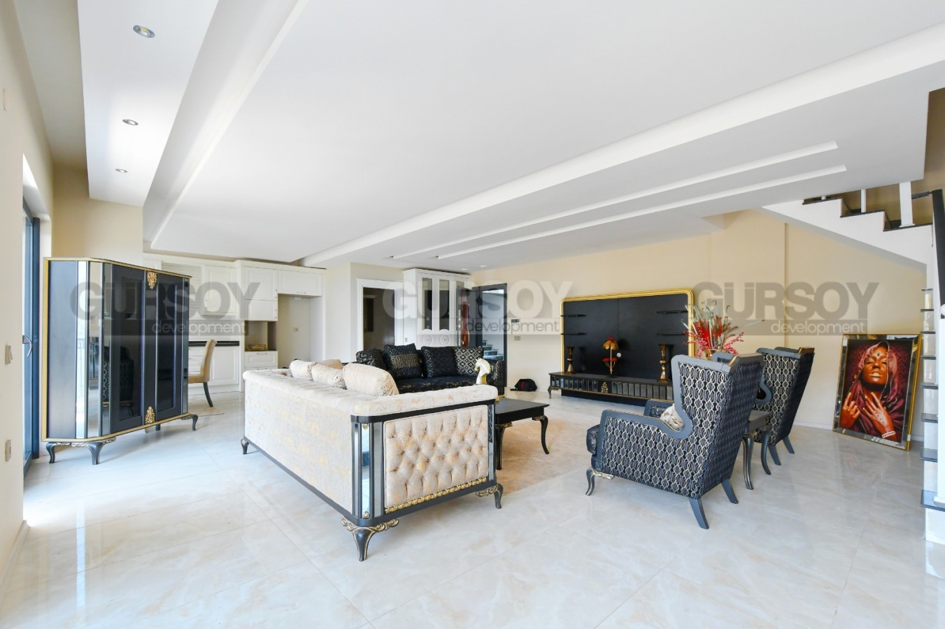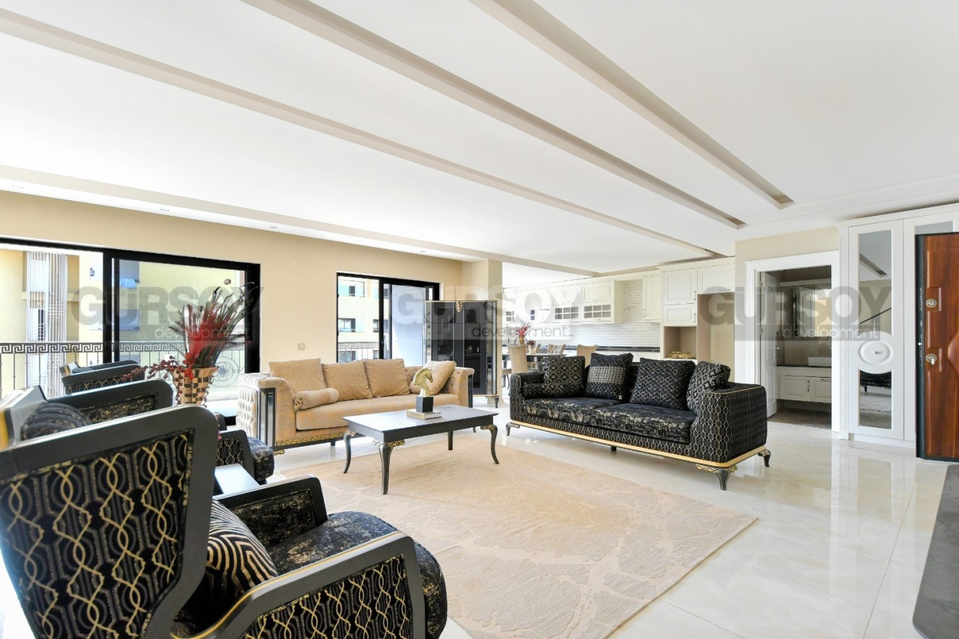 Продаётся просторная дуплекс-квартира планировки 3+1 площадью около 200 м² на третьем этаже. Квартира предлагается без мебели, что позволяет создать интерьер по собственному вкусу. В квартире предусмотрены две ванные комнаты, три туалета и два балкона, из которых открывается вид на море и территории комплекса.