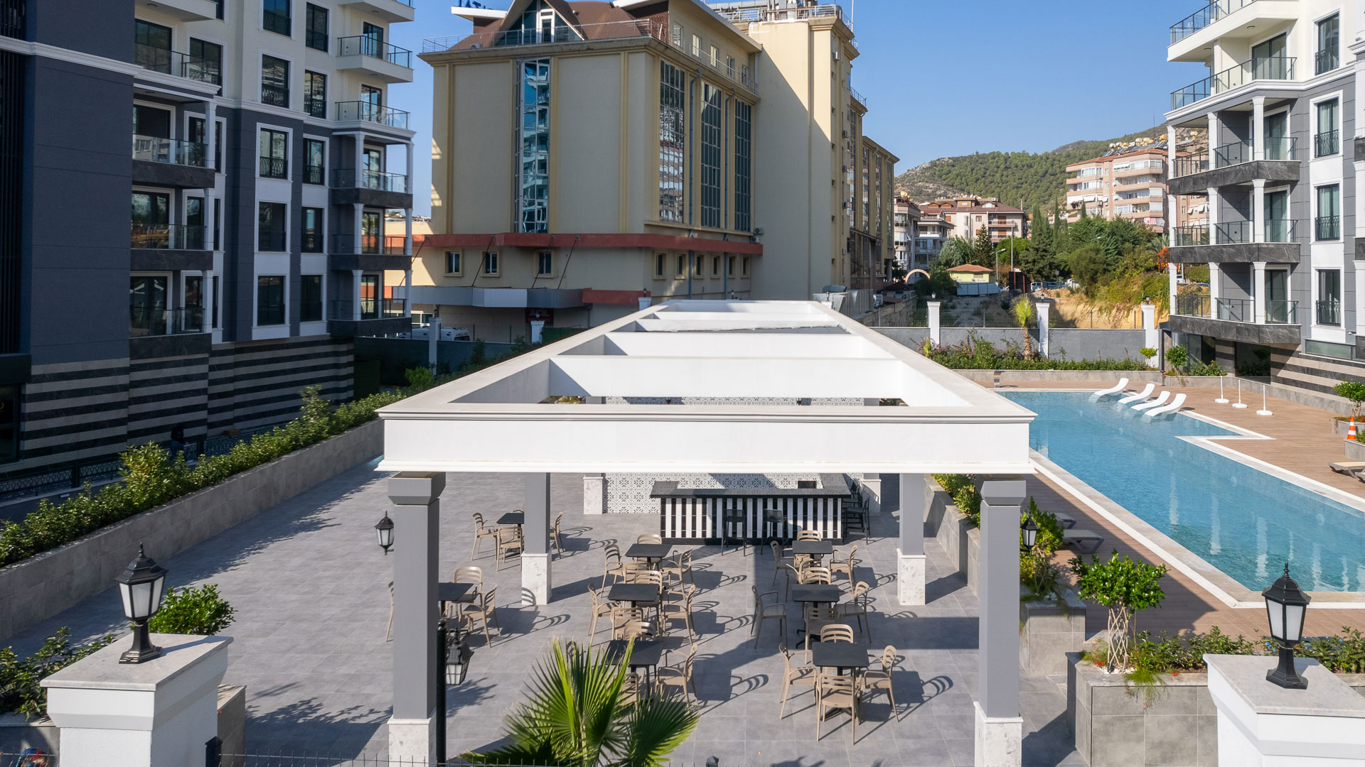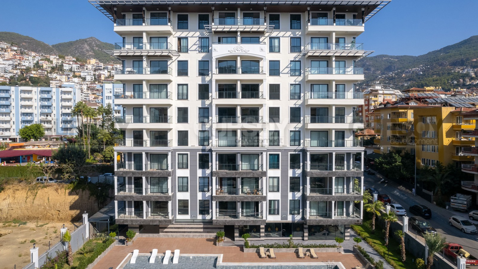Жилой комплекс расположен в центральной части Алании, в районе Клеопатры. Вся необходимая инфраструктура — больницы, банки, школы, магазины, супермаркеты, кафе и рестораны — находится в пешей доступности. Рядом расположен рынок свежих продуктов и морепродуктов. До знаменитого пляжа «Клеопатра» с Голубым флагом всего 850 метров.