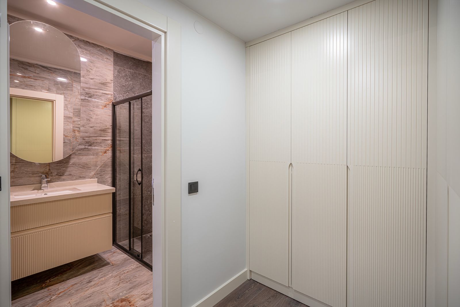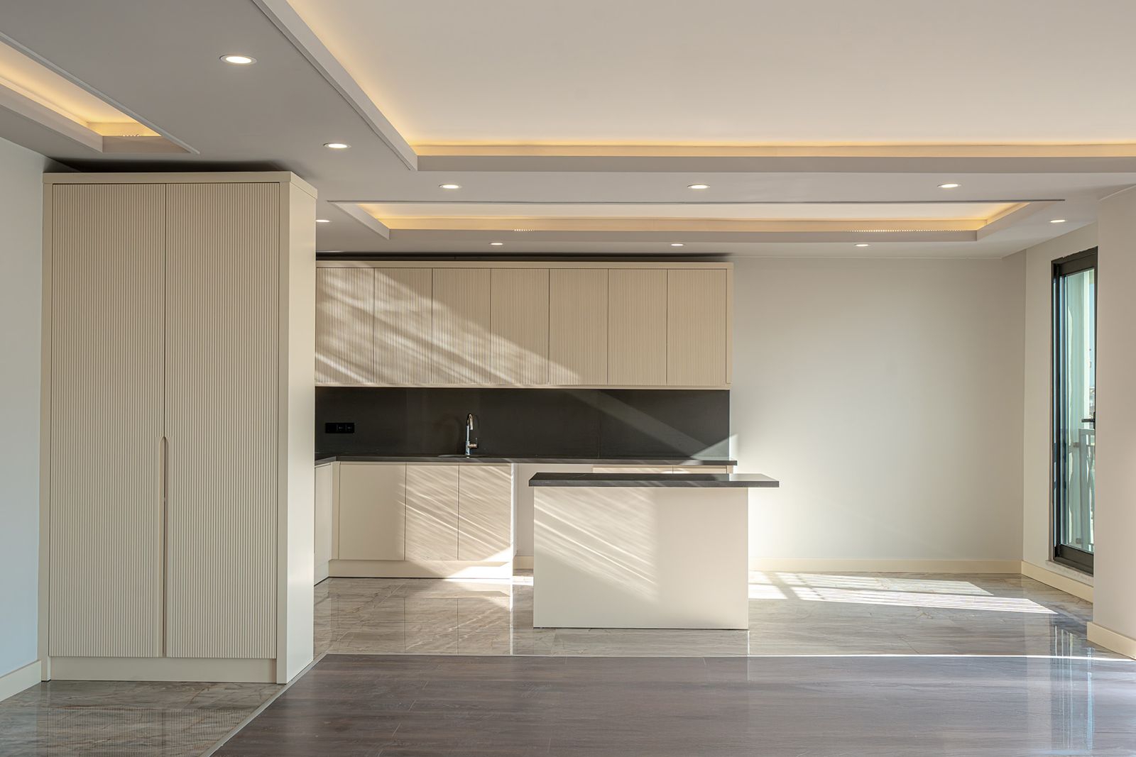 Квартира 3+1 находится в жилом комплексе, расположенном в центре города, в престижном районе Клеопатры. Просторная гостиная совмещена с кухней американского типа, оборудованной островом, что создаёт удобное пространство для готовки и отдыха. Панорамные окна наполняют помещение естественным светом, а выход на балкон позволяет наслаждаться свежим воздухом. Просторная прихожая с встроенным шкафом в светлых тонах делает зону входа удобной и функциональной. В квартире три уютные спальни и два санузла. Она полностью готова к проживанию, выполнен современный ремонт, а ванные комнаты и кухня оснащены стильной мебелью.