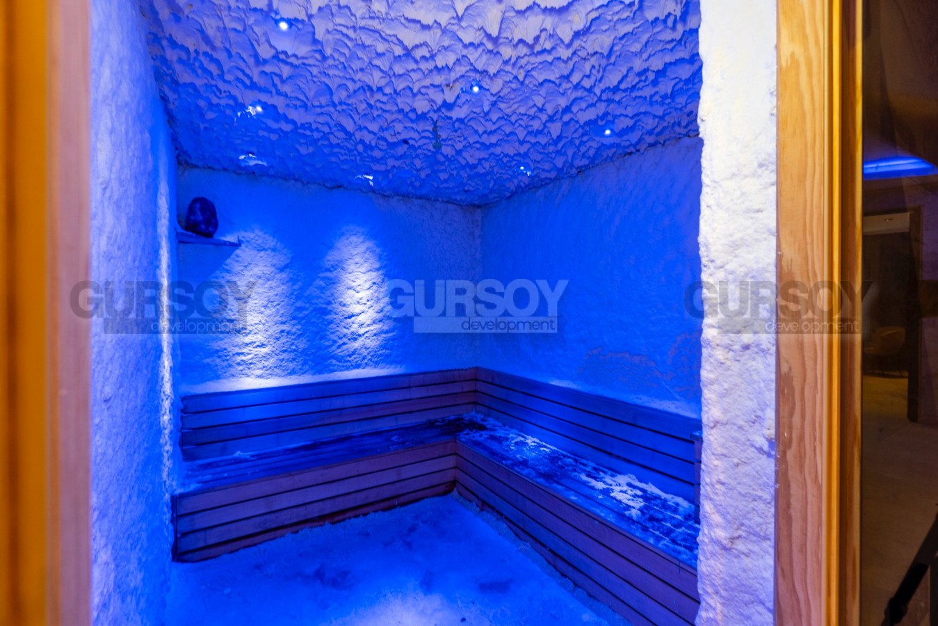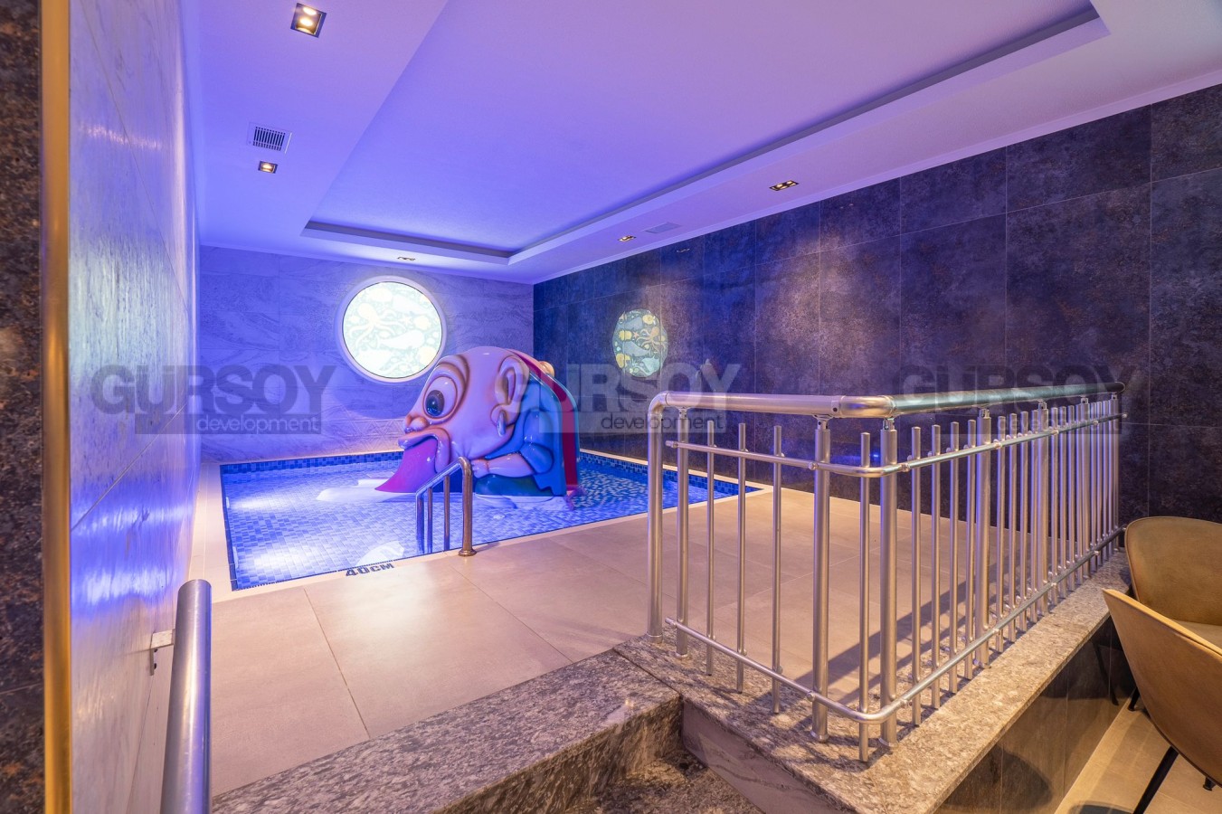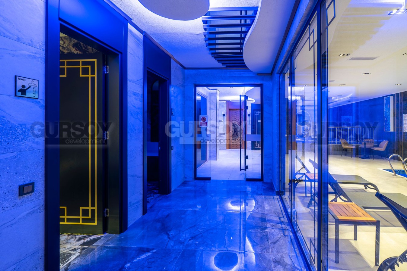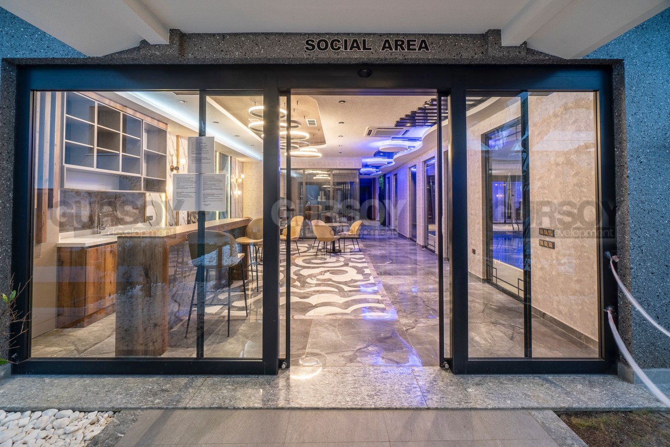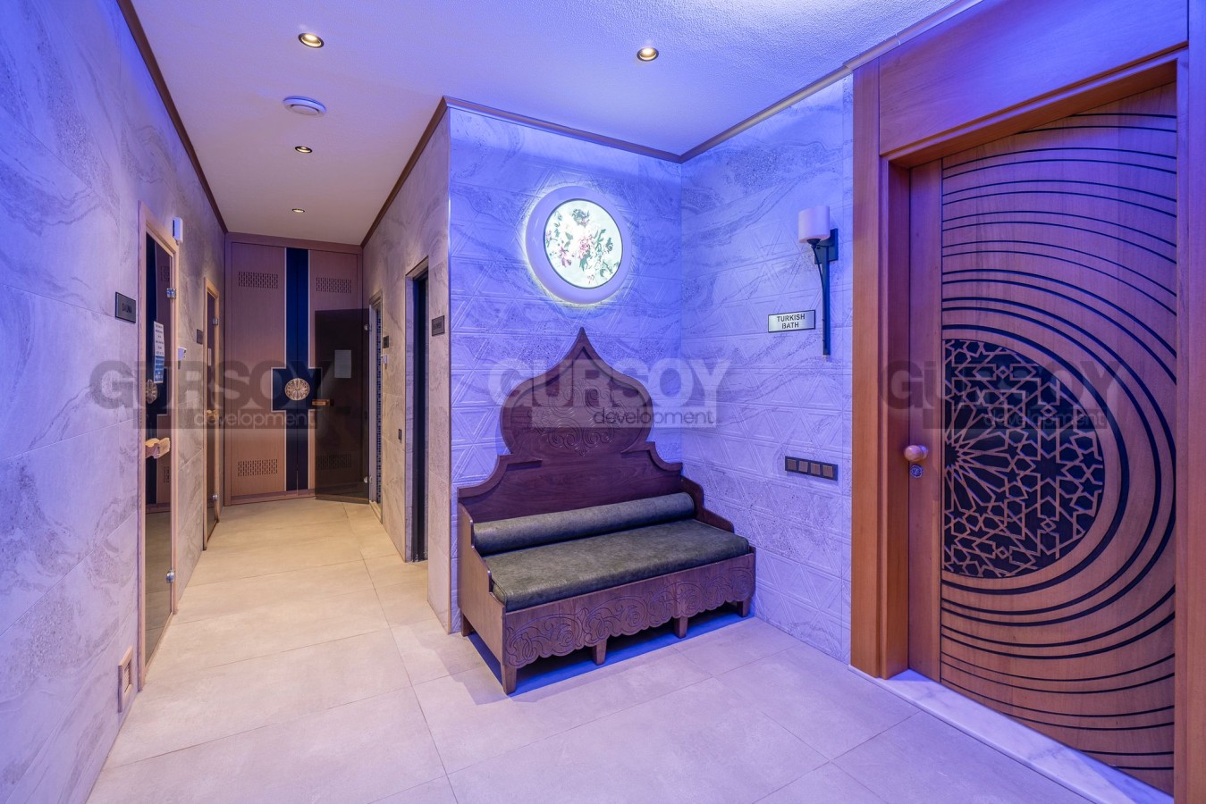 Инфраструктура комплекса включает ландшафтный сад с садовым освещением, плавательный бассейн с детской секцией и горкой, зону для загара и отдыха, тренажерный зал, СПА-зону, генератор, Wi-Fi на территории, автопарковку, охрану, видеонаблюдение и пр.