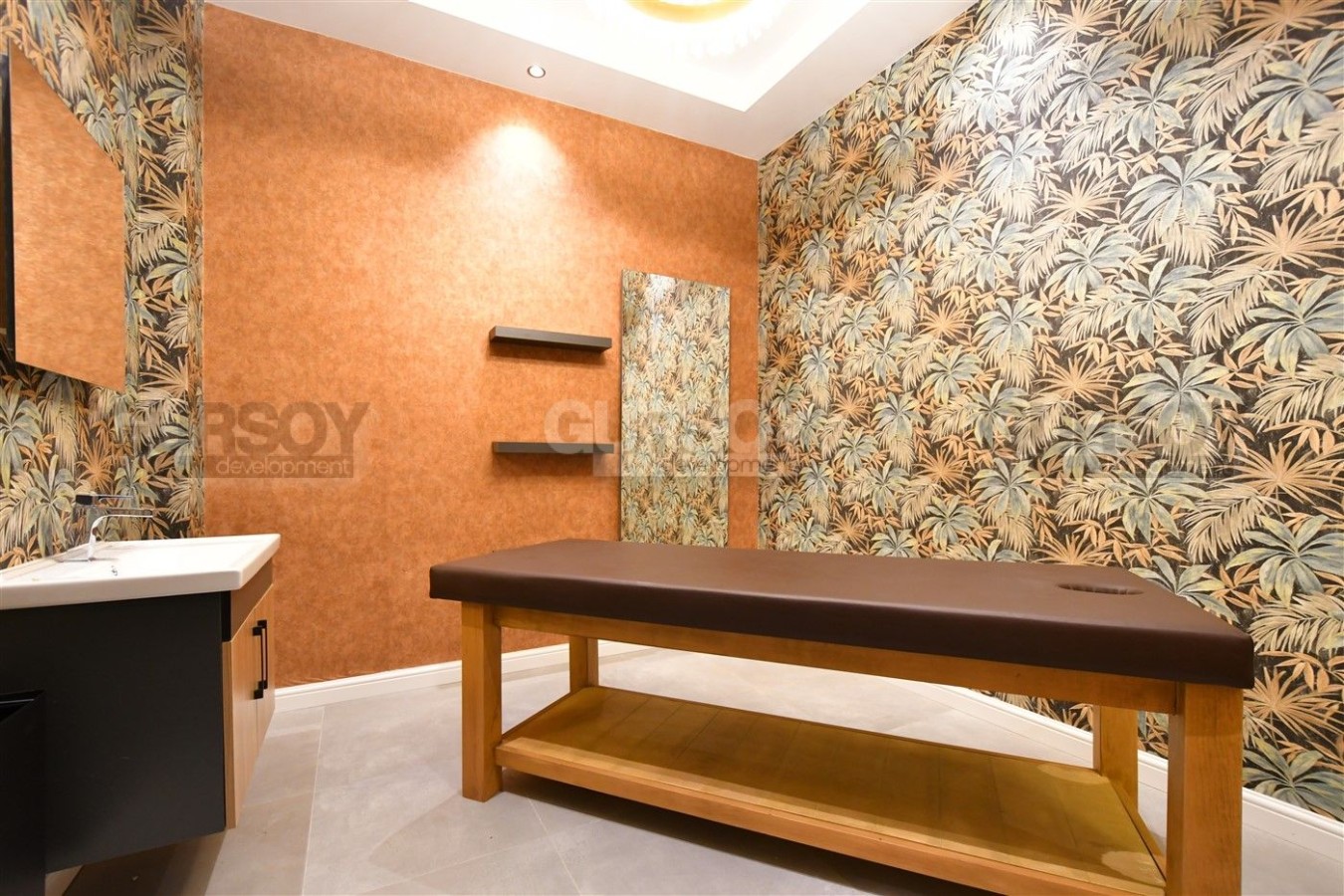 Жилой комплекс обладает обширной инфраструктурой, предлагая жильцам внутренний и открытый бассейны, аквапарк для активного отдыха, хамам, сауну и паровую комнату для расслабления, фитнес-зал для занятий спортом, оборудованные зоны барбекю и камелии для отдыха, детскую игровую зону для маленьких жителей, а также генератор и трансфер до моря, которое находится всего в 1,8 км от комплекса.