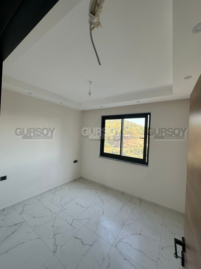 Квартира формата 2+1 общей площадью 80 м² идеально подойдет для комфортного проживания. В планировку входят две просторные спальные комнаты, функциональная прихожая зона со встроенным шкафом, полностью оборудованный санузел и балкон с великолепным видом на горы и город. Жилье расположено на 4 этаже, отличается южной ориентацией, что обеспечивает хорошее естественное освещение в течение дня. Квартира предлагается без мебели, что дает возможность оформить интерьер по своему вкусу.