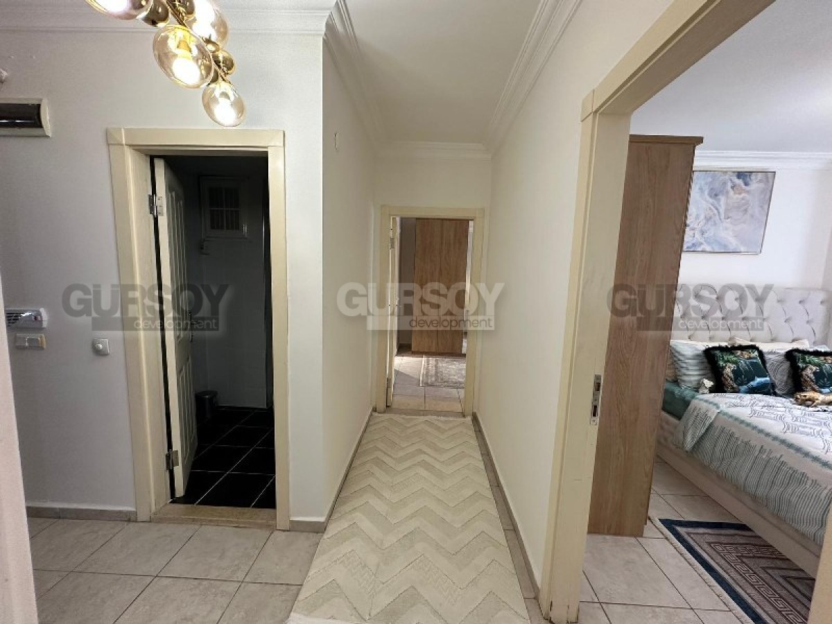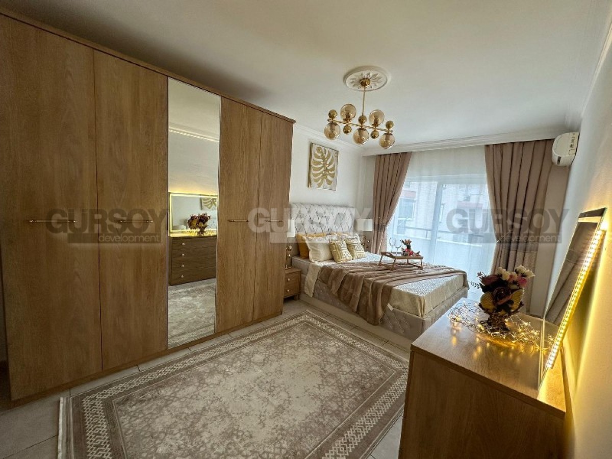 На продажу выставлена комфортабельная, просторная квартира 2+1, на площади 115 м2, расположенная в симпатичном, ухоженном жилом комплексе 2012 года постройки, в центре популярного района Аланьи - Нижняя Оба. В планировке квартиры - совмещенная с кухней гостиная, 2 спальни, 2 санузла, оснащенных душевыми кабинами, и 2 открытых балкона, с видом на улицы города. В квартире сделан новый ремонт, установлена высококлассная мебель и вся необходимая бытовая техника. Светлая, просторная гостиная, с обоями спокойных оттенков на стенах, укомплектована мягкими креслами, диваном, журнальным столиком, стильной тумбой и оригинальным обеденным столом, с комфортабельными стульями. Практичная кухня оснащена холодильником, стиральной и посудомоечной машинами и газовой плитой, в уютных спальнях установлены большие кровати, тумбы, трюмо и гардеробные шкафы, а на балконе имеется набор компактной садовой мебели.