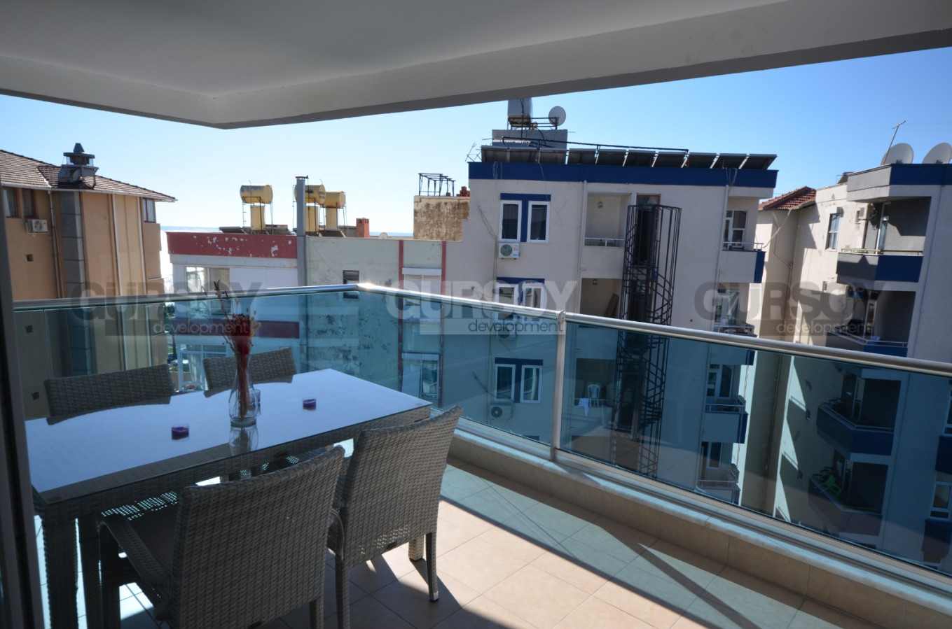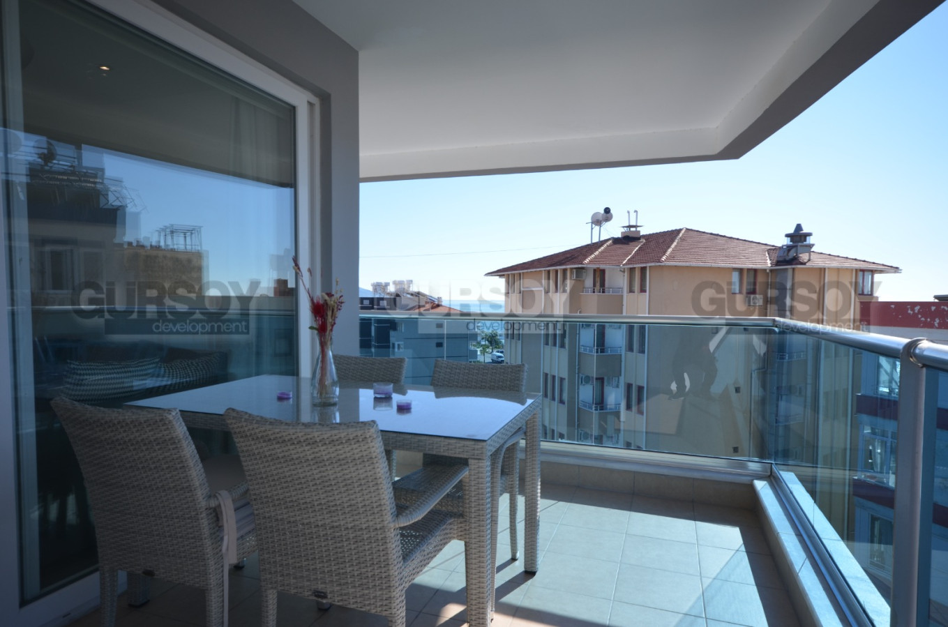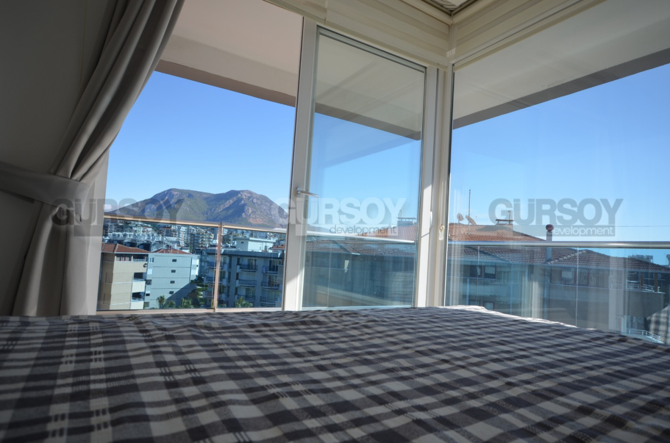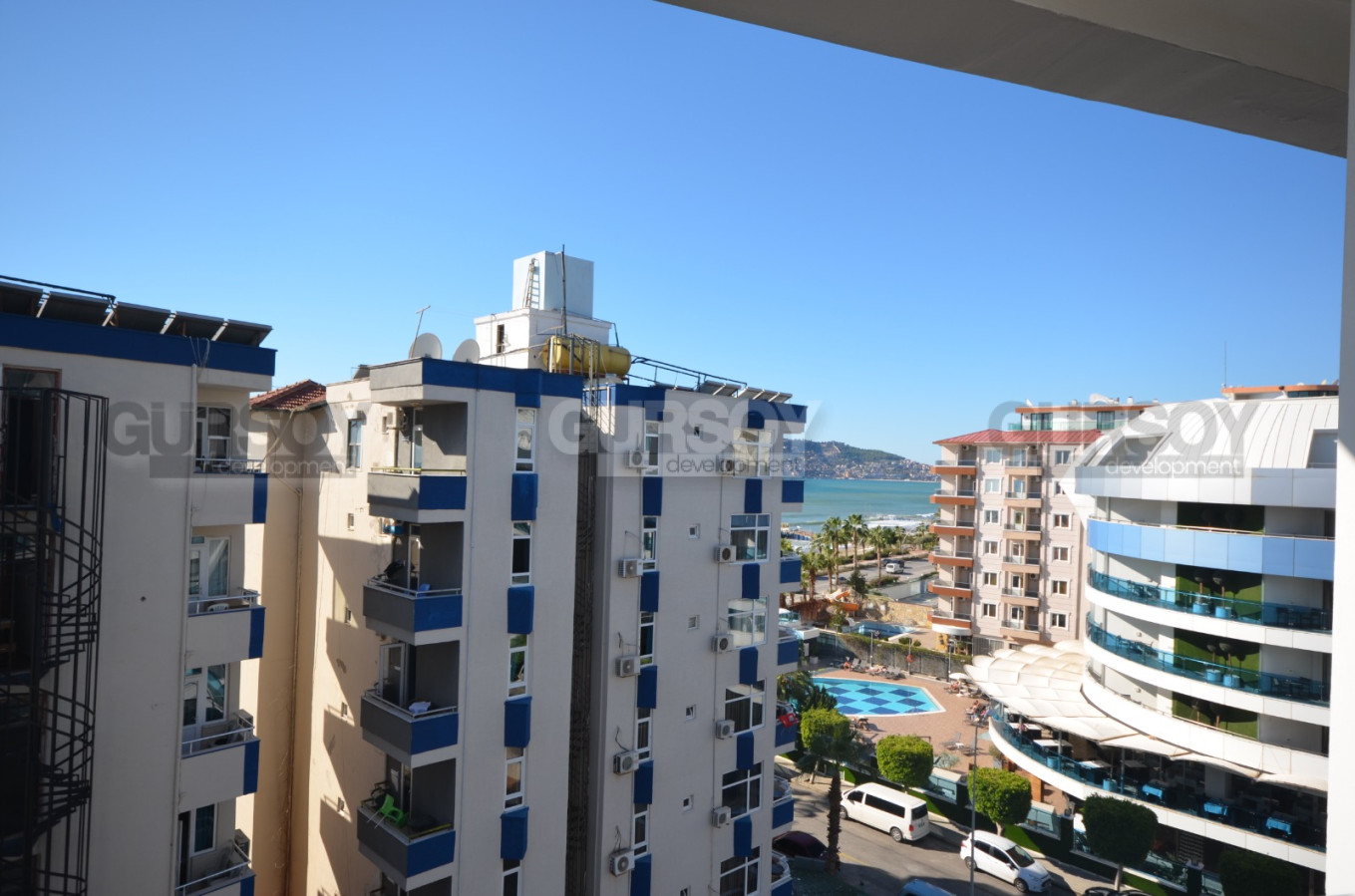 Квартира находится на 6-м этаже и имеет площадь 110 квадратных метров. Она полностью меблирована и оснащена всем необходимым для комфортной жизни. Юго-восточная сторона квартиры обеспечивает естественное освещение и захватывающий вид на горы, море и замок. Вы также сможете наслаждаться свежим морским воздухом, так как квартира находится всего в 50 метрах от пляжа.