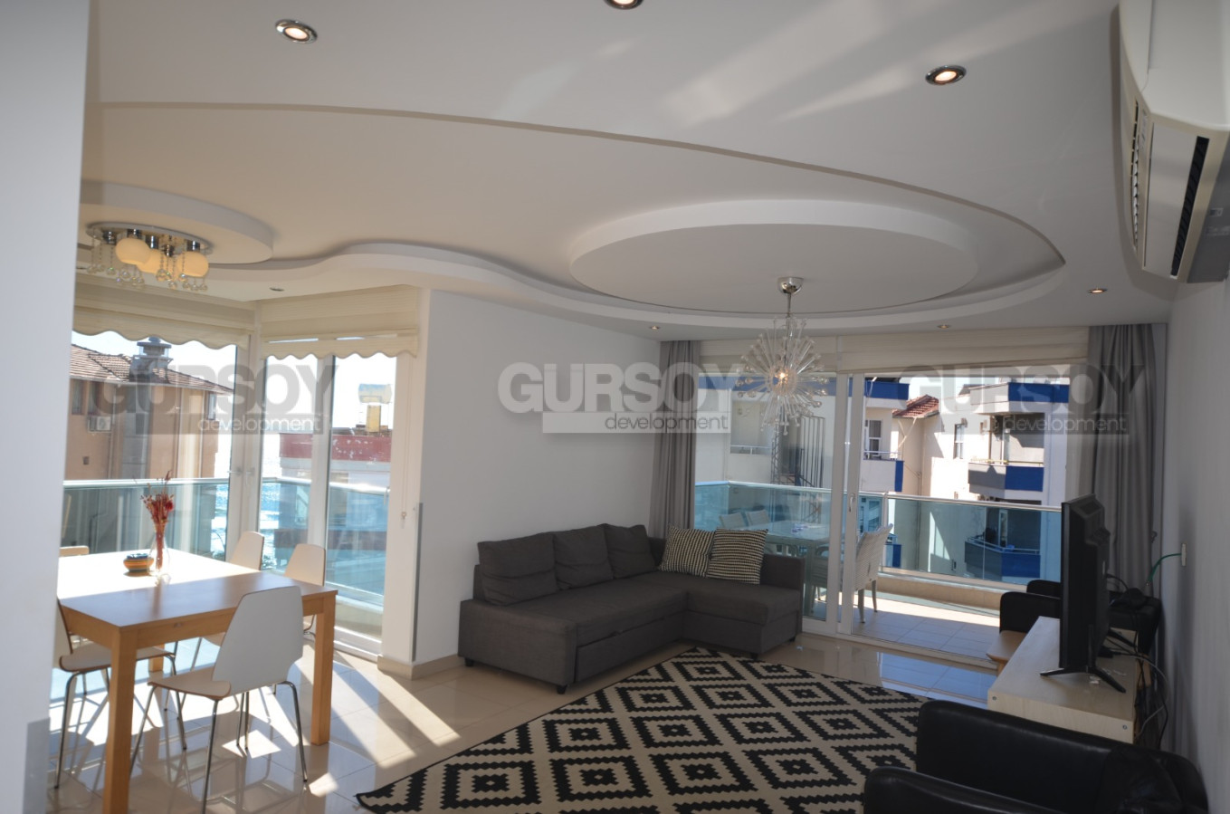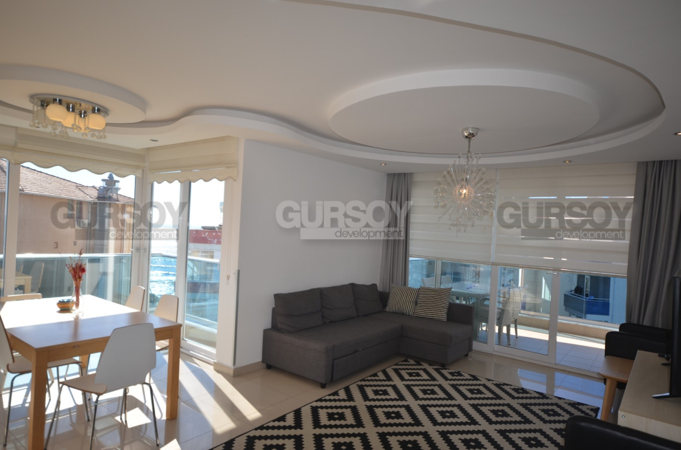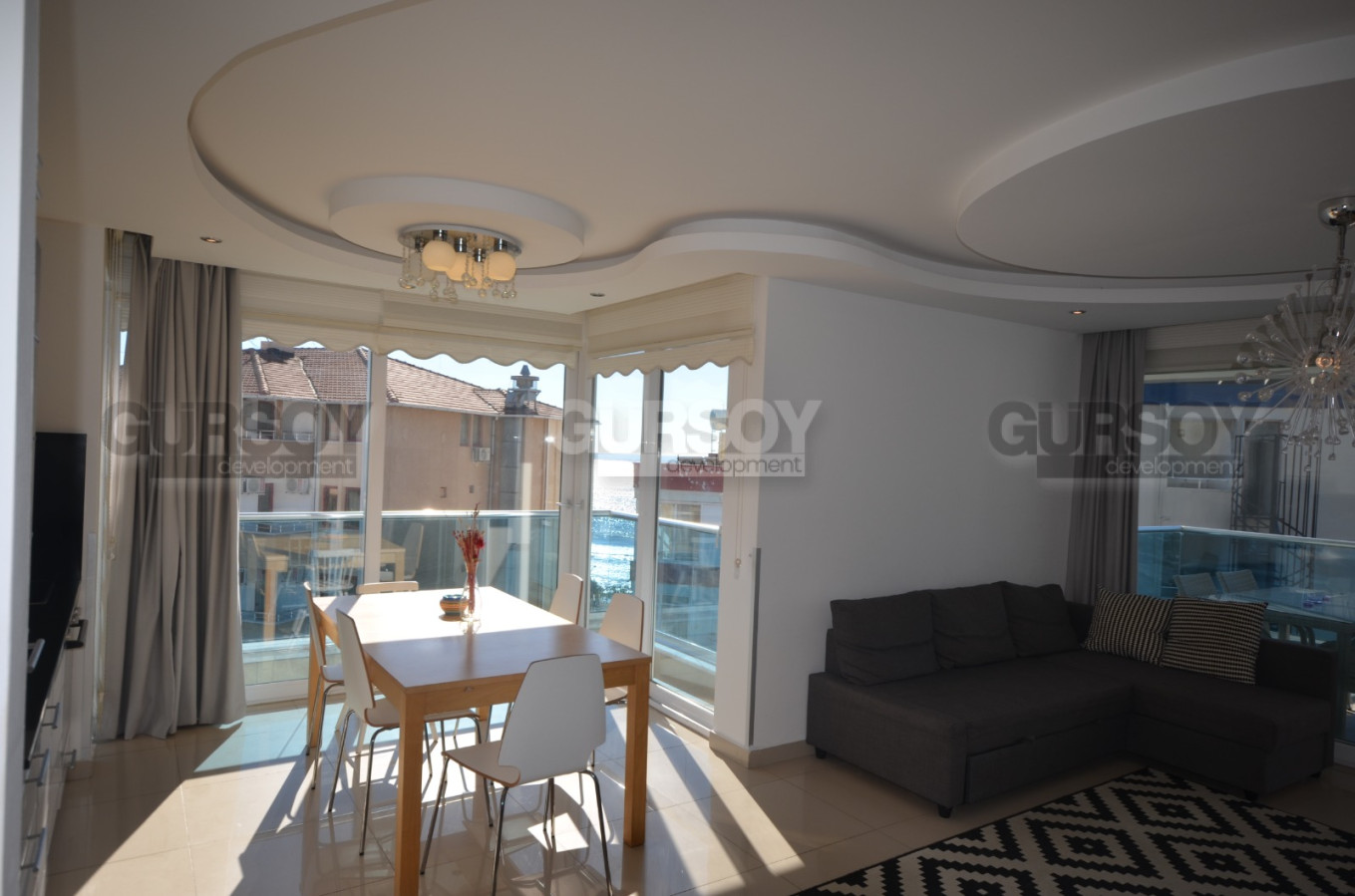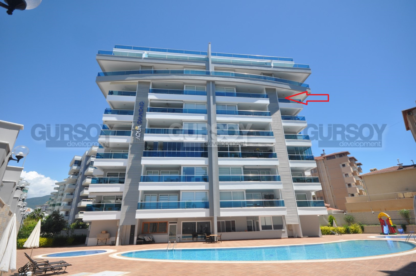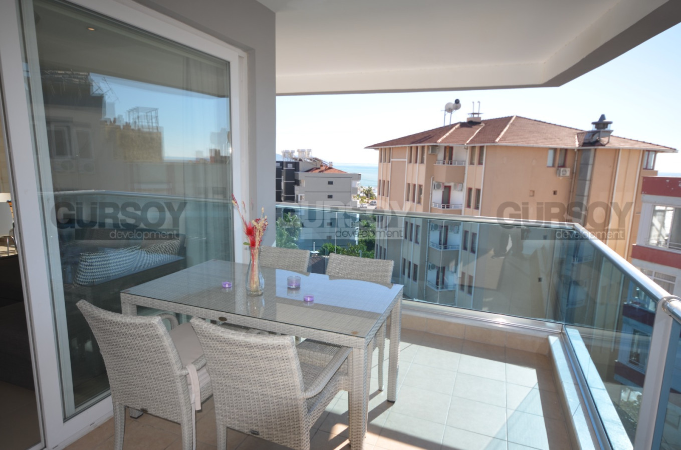 Квартира находится на 6-м этаже и имеет площадь 110 квадратных метров. Она полностью меблирована и оснащена всем необходимым для комфортной жизни. Юго-восточная сторона квартиры обеспечивает естественное освещение и захватывающий вид на горы, море и замок. Вы также сможете наслаждаться свежим морским воздухом, так как квартира находится всего в 50 метрах от пляжа.