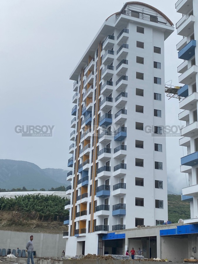 Квартира находится на 11м этаже 12и этажной резиденции. Новый комплекс был построен в 2023 году и состоит из двух жилых блоков, а также объектов инфраструктуры. Комплекс находится в тихом месте, ближе к горам. До пляжа 1800м.