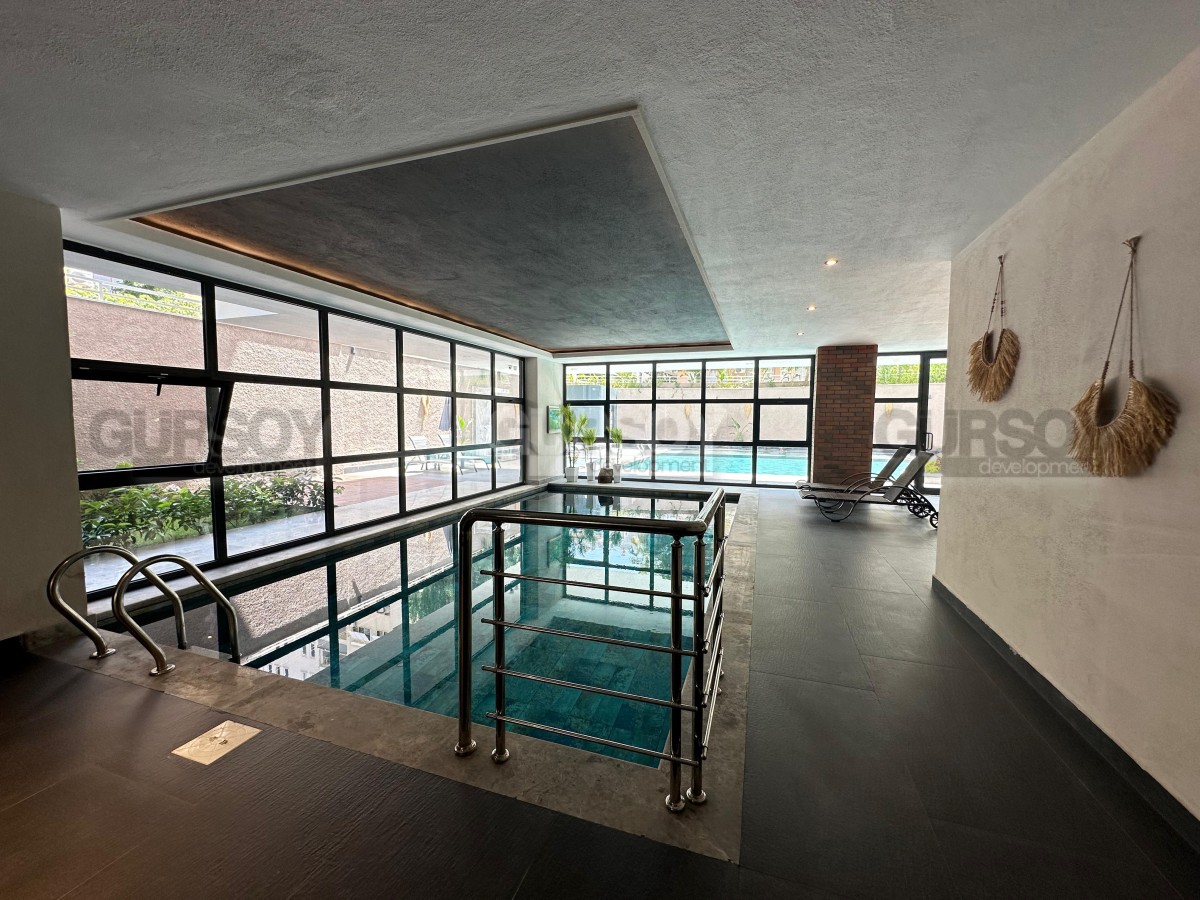 Комплекс предлагает жителям развитую инфраструктуру: открытый и крытый бассейны, сауну, современный фитнес-зал, кафе, а также детскую игровую площадку. Отдельного внимания заслуживает стильная видовая терраса на крыше. В здании установлены камеры видеонаблюдения, работает круглосуточная охрана, что обеспечивает спокойствие и безопасность.