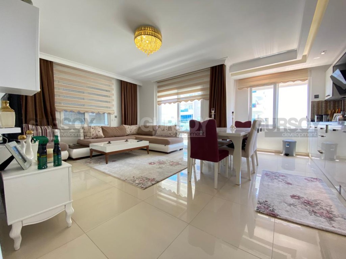 Представляем на продажу квартиру в современном жилом комплексе, который расположен в курортном городе Аланья, в районе Махмутлар, всего в 200 м от моря.