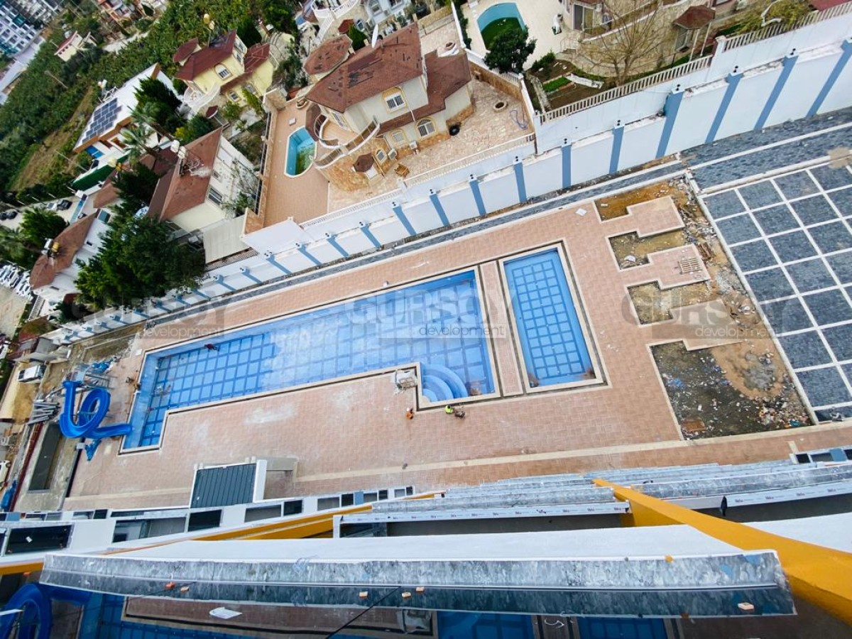 Квартира находится на 8м этаже 12и этажной резиденции. Новый комплекс был построен в 2023 году и состоит из двух жилых блоков, а также объектов инфраструктуры. Комплекс находится в тихом месте, ближе к горам. До пляжа 1800м.