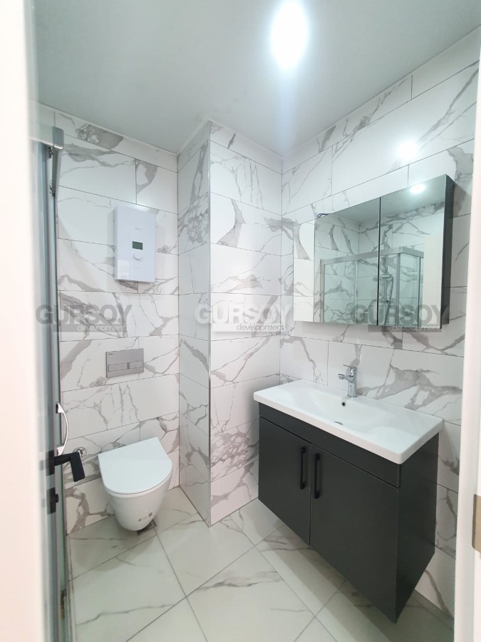 Квартира 1+1,45м2 расположена на 1м этаже современной 5-этажной резиденции, которая была построена в 2022 году. До моря 1400м
