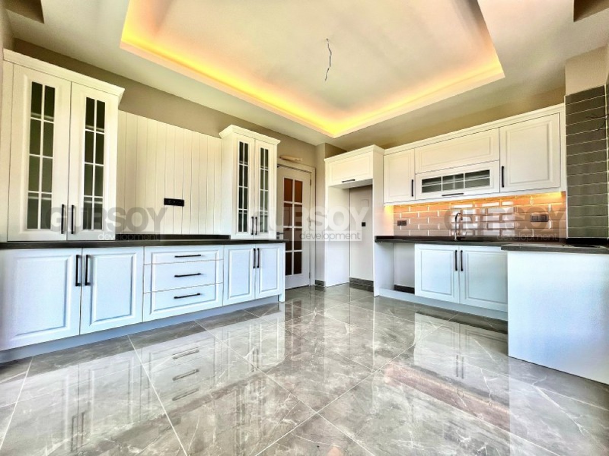 Квартира 2+1, 120м2 предлагается без мебели, возможно обустроить пространство по своему вкусу. Если нужна будет помощь в подборе мебели и техники, менеджеры нашей компании помогут вам в этом, в рамках послепродажного сервиса.