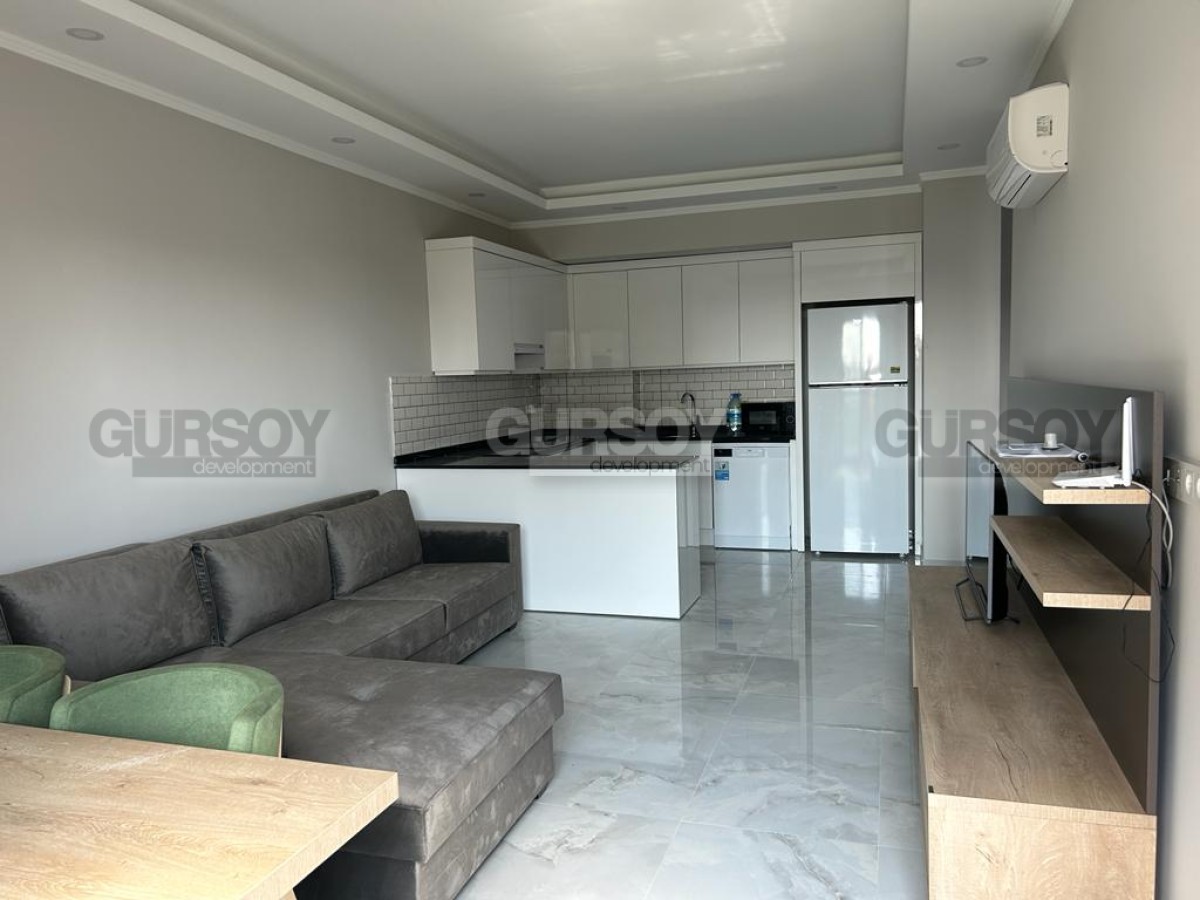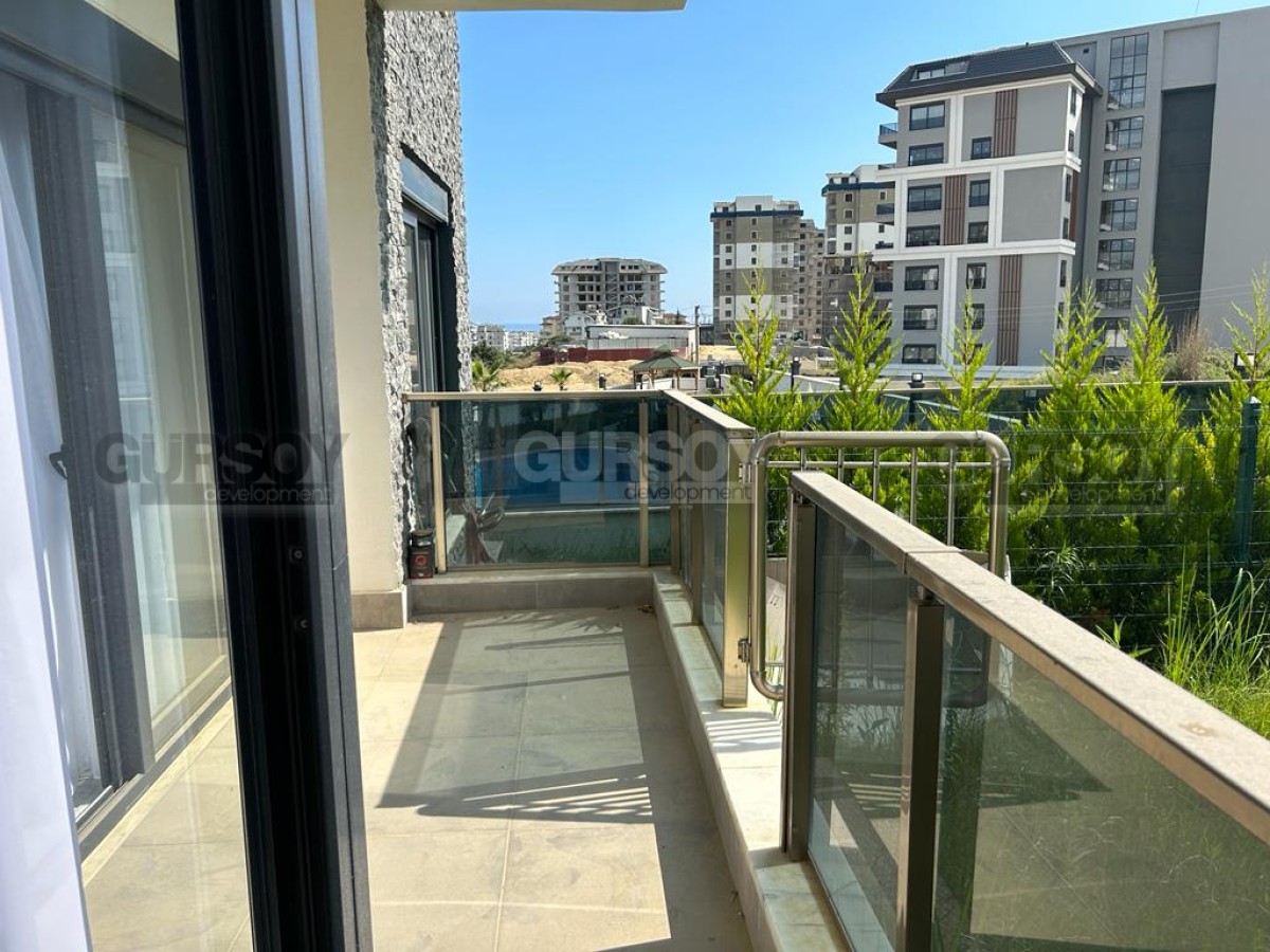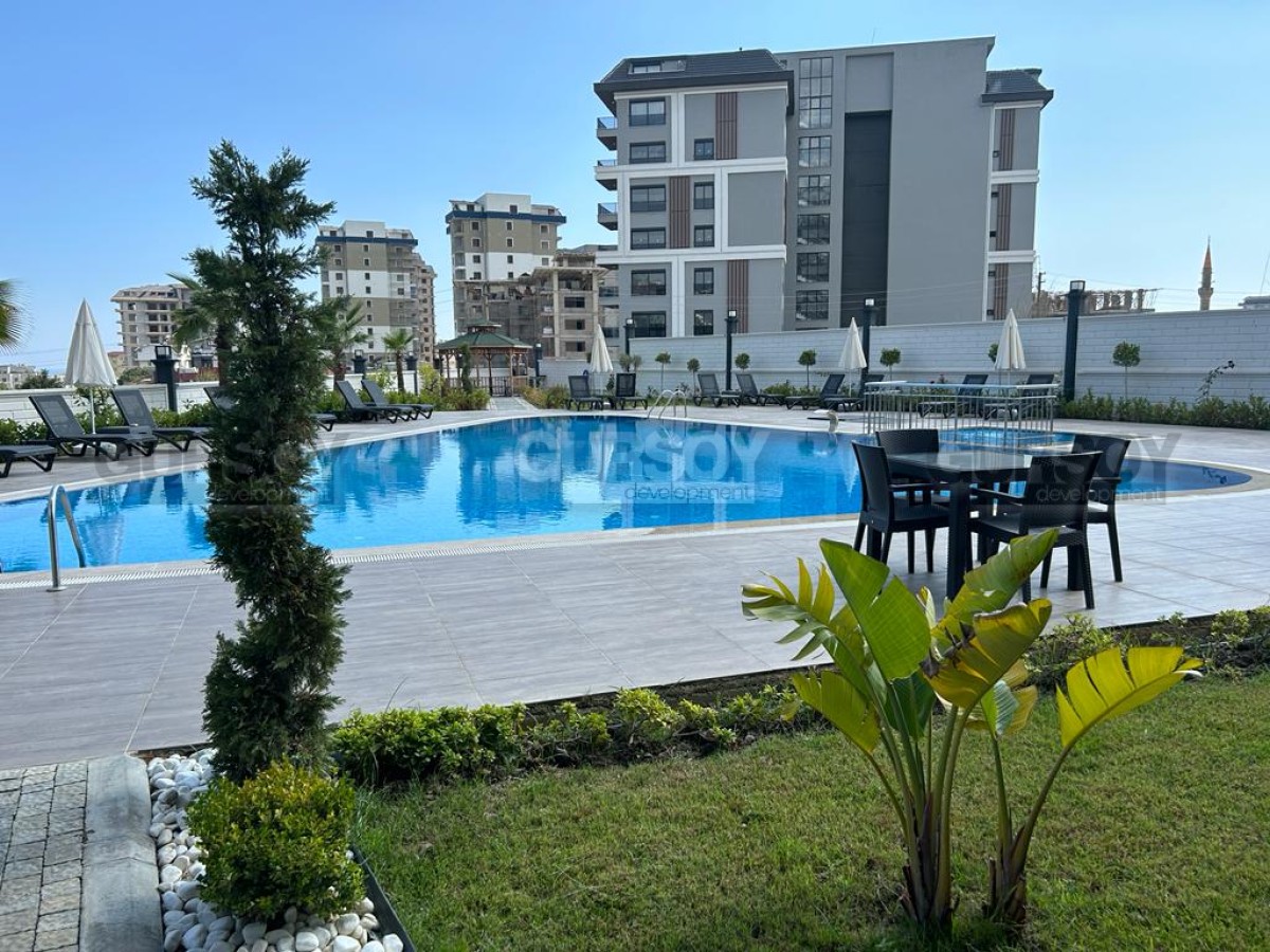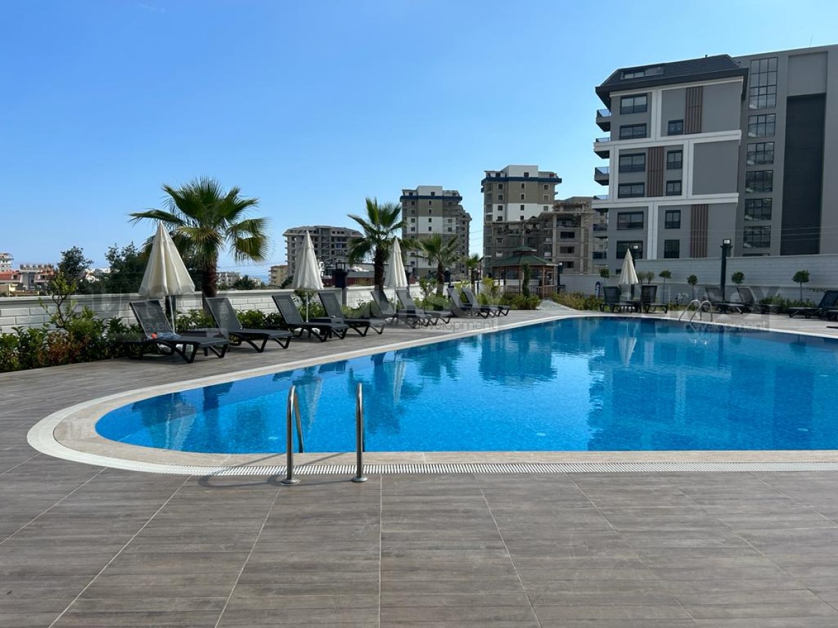 Квартира 1+1,66м2 расположена на 1м этаже 7-этажной современной резиденции, которая была построена в 2022 году. До моря 1400м.