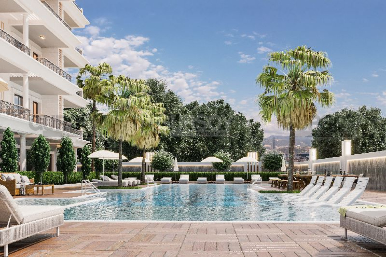 В проекте предусмотрены зоны общего пользования такие как, плавательный бассейн с террасой для загара с шезлонгами, сад, детская игровая площадка, барбекю, автопарковка и генератор. В здании будут располагаться сауна, фитнес-зал, бильярд.