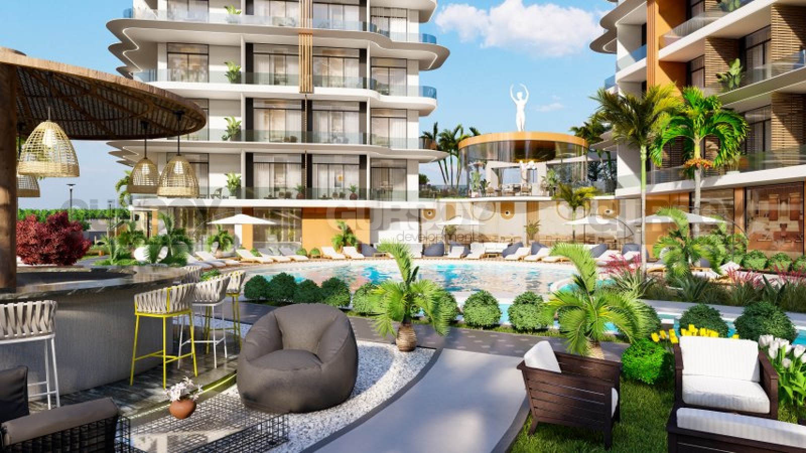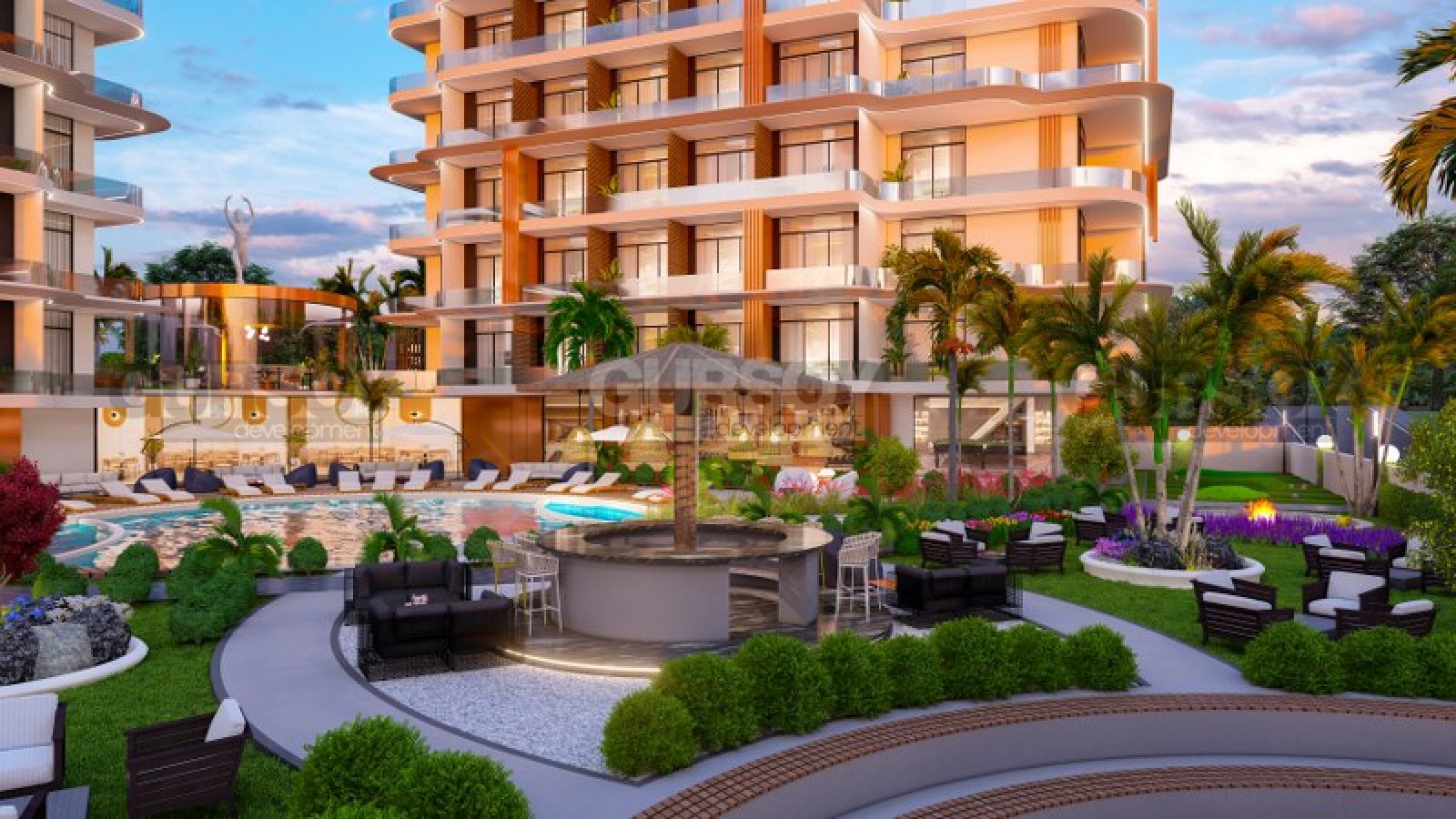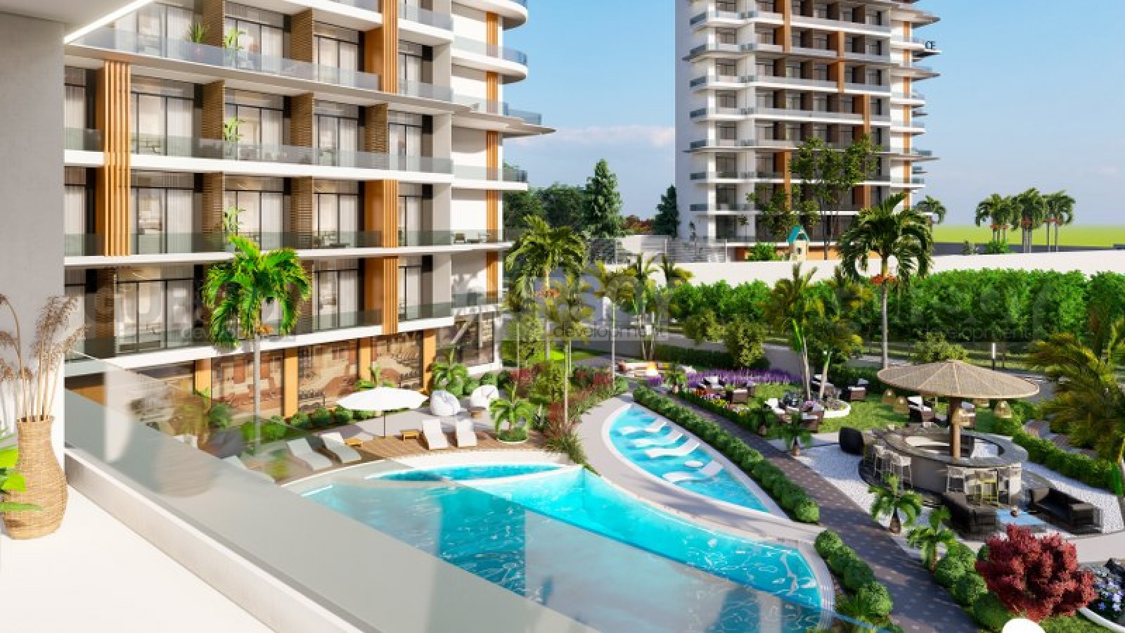 В комплексе будет представлен широкий спектр услуг, включая краткосрочную и долгосрочную аренду, сервис по клинингу, магазин, медпункт, лобби и ресепшн. Инфраструктура комплекса охватывает все аспекты комфортного образа жизни: открытый и закрытый бассейны, амфитеатр, зеленые территории с детской площадкой, крытая и открытая парковка, SPA-центр с сауной, хамамом, парной и массажным кабинетом, фитнес-зал, а также разнообразные развлечения, включая бильярд, настольный теннис и садовые шахматы. У резиденции есть свой собственный пляж, на который вас доставит трансфер.